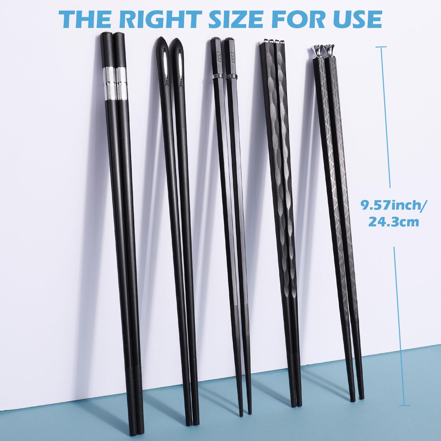 - Value 5 Pairs Chopsticks Set: Our chopsticks set is decorated with 5 unique tops, which are very stylish and modern. It includes 5 pairs of chopsticks in different syles, so that everyone in your family has their own exclusive style, which makes eating more healthy and hygienic.