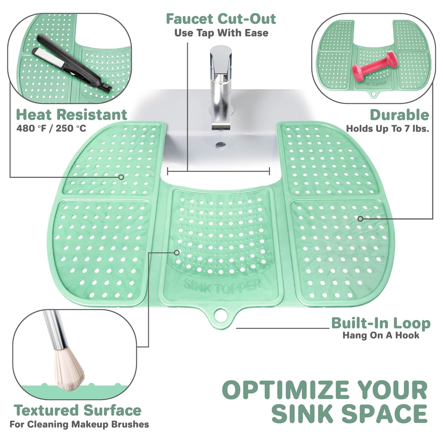 - HEAT-RESISTANT HOT TOOL MAT: Made from a durable, heat-resistant silicone sink mat, this Foldable Sink Topper doubles as a hot tool mat—perfect for protecting surfaces from curling irons, straighteners, and more (up to 480°F).