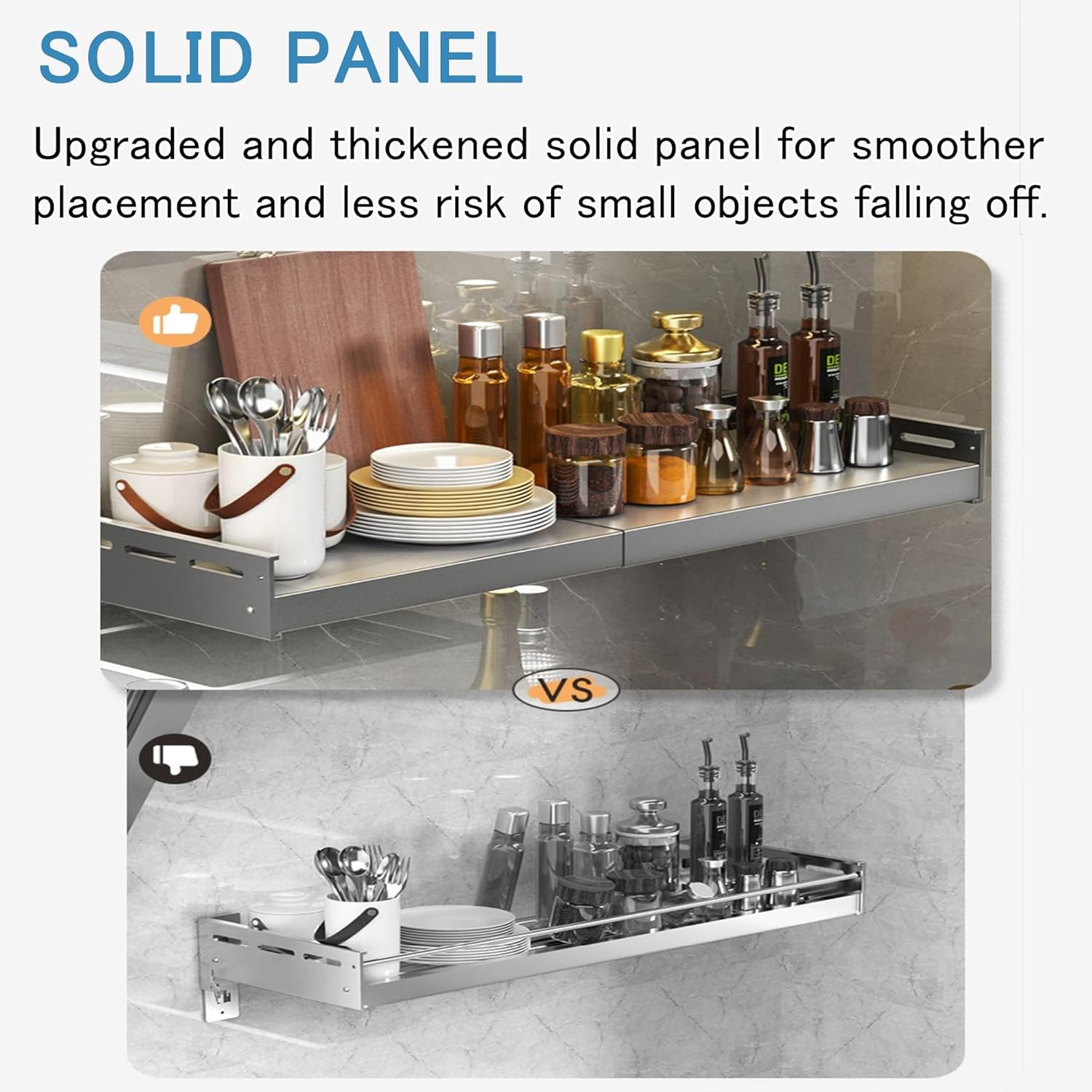 - Retractable and adjustable --- Place your microwave or electric oven on this wall-mounted stand, the length of which can be extended and mounted to suit your needs. You don't have to worry about the shelf being too long or too short. (Shelf: 16 inches wide, 16 inches before stretching, with a maximum load-bearing distance of 25.5 inches. Please do not exceed, as bending is prone to occur !!!!)