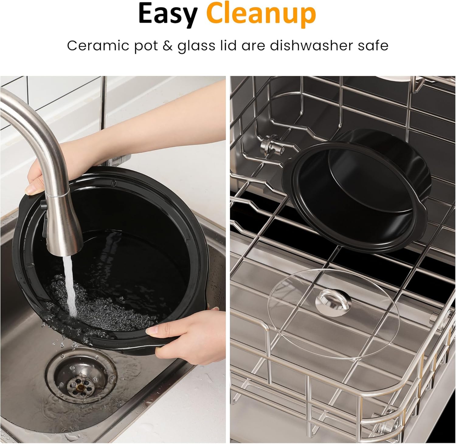 - Effortless Cleanup: Featuring a dishwasher-safe detachable ceramic pot and glass lid, cleaning up is a breeze, leaving you with more time to enjoy your culinary creations. Moreover, the stainless steel casing can be wiped clean with a damp cloth, ensuring it stays pristine and ready for your next delicious meal.