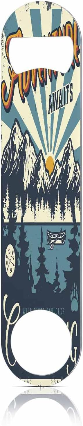 Adventure Awaits Stainless Steel Bottle Opener Vintage Canoe Boat Forest and Mountains Landscape Flat Beer Bottle Opener Keychain for Home Kitchen Bar Restaurant Party Birthday Gift