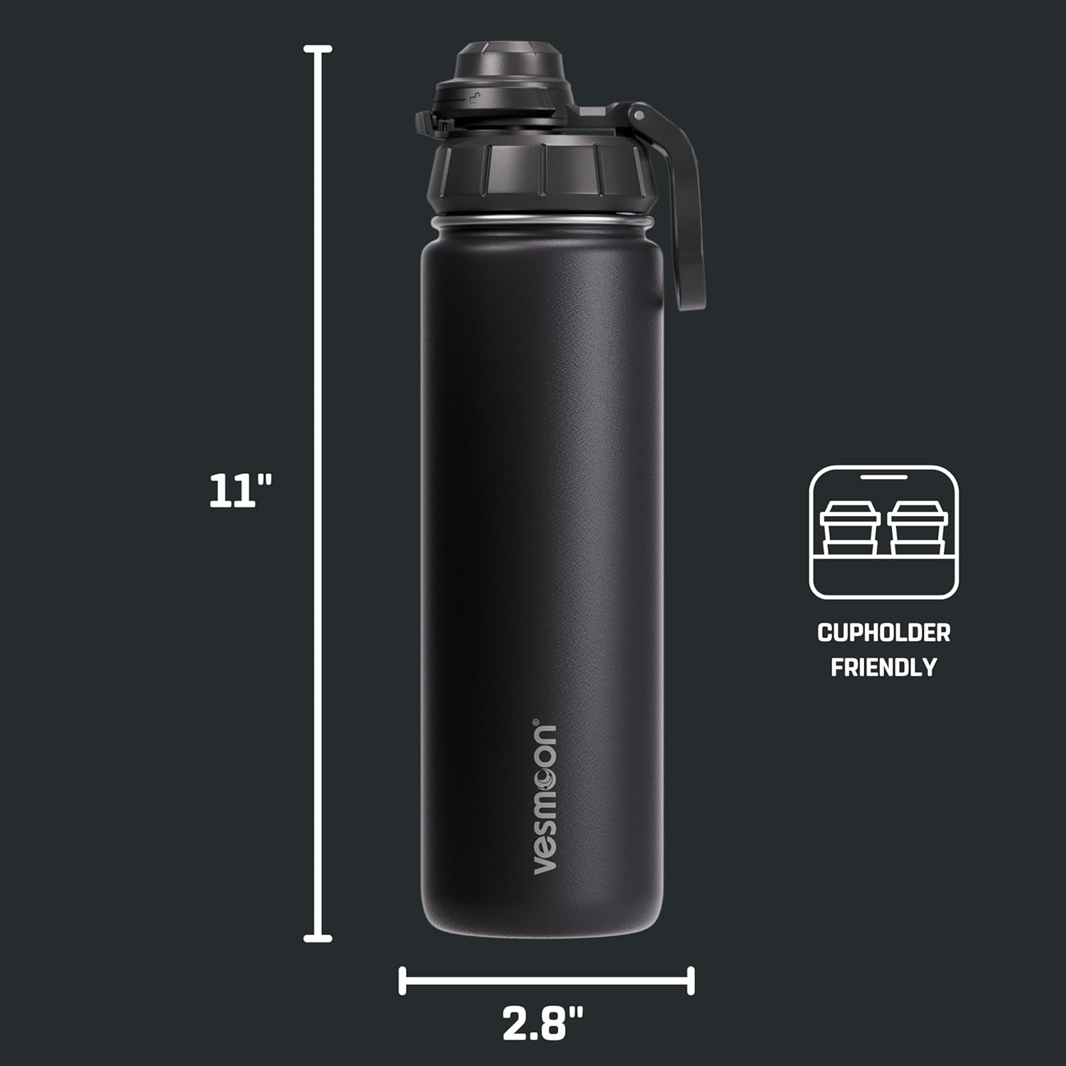 - PREMIUM INSULATED WATER BOTTLE - Vesmoon Vessence are manufactured from high quality sustainable materials that offer great thermal insulation. Unlike conventional thermos water bottles, our triple walled design, keeps your drinks hot or cold for longer and up to 36+ hours it'll surprise you! Our stainless steel water bottle has a wide mouth making cleaning easier.
