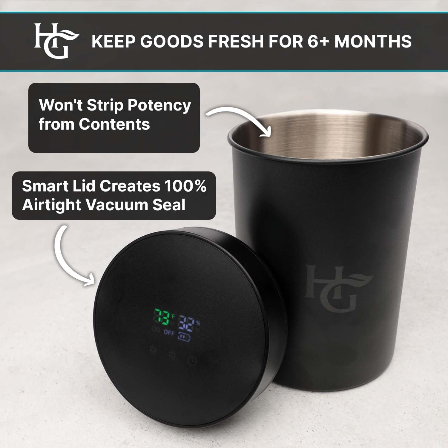 - UPGRADED VACUUM SEAL SMART LID WITH BUILT IN HYGROMETER - Monitor the internal environment of your jar with 100% accurate precision. Each jar contains a hygrometer built into the lid to ensure you can monitor inside the jar and maintain the perfect oxygen, humidity and internal storage environment