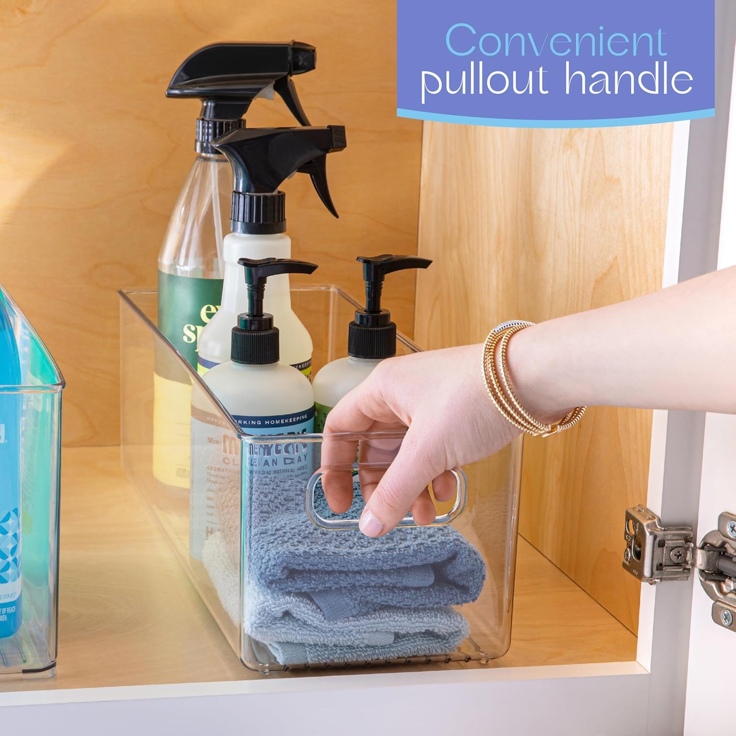 Plastic Food Storage Clear Container Bin with Handles for Organizing Kitchen, Pantry, Fridge, Freezer, Pantry,Bathroom. 16"x6"x5"