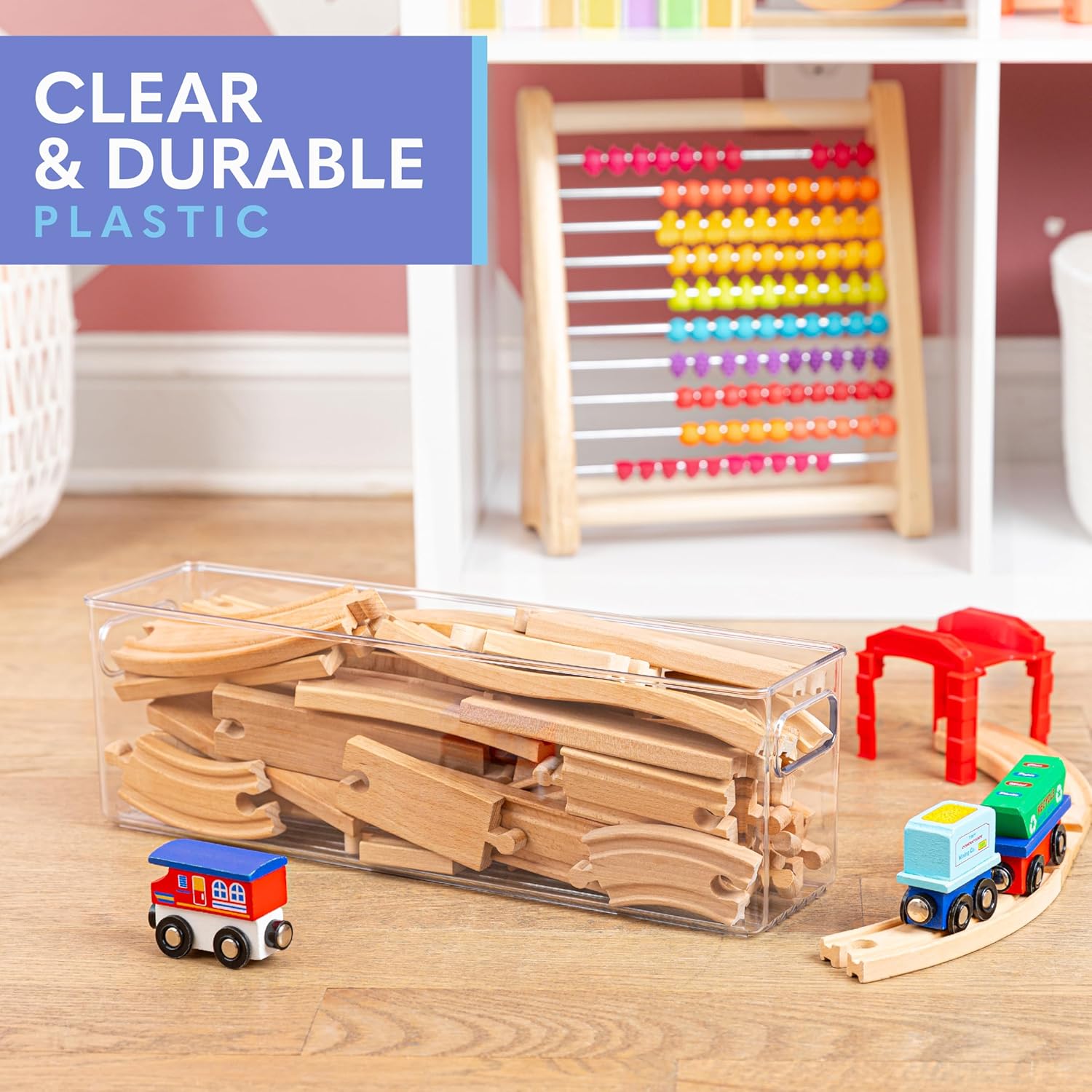 Plastic Food Storage Clear Container Bin with Handles for Organizing Kitchen, Pantry, Fridge, Freezer, Pantry,Bathroom. 16"x4"x5"