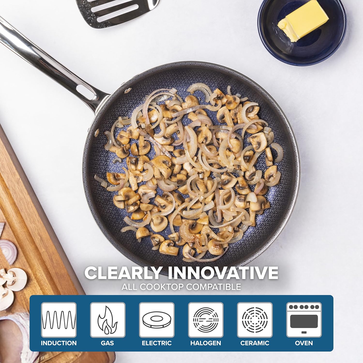 Viking 3-Ply Non Stick Frying Pans, 2-Piece Hybrid Plus Stainless Steel, 9.5 and 11 Inch, Silver