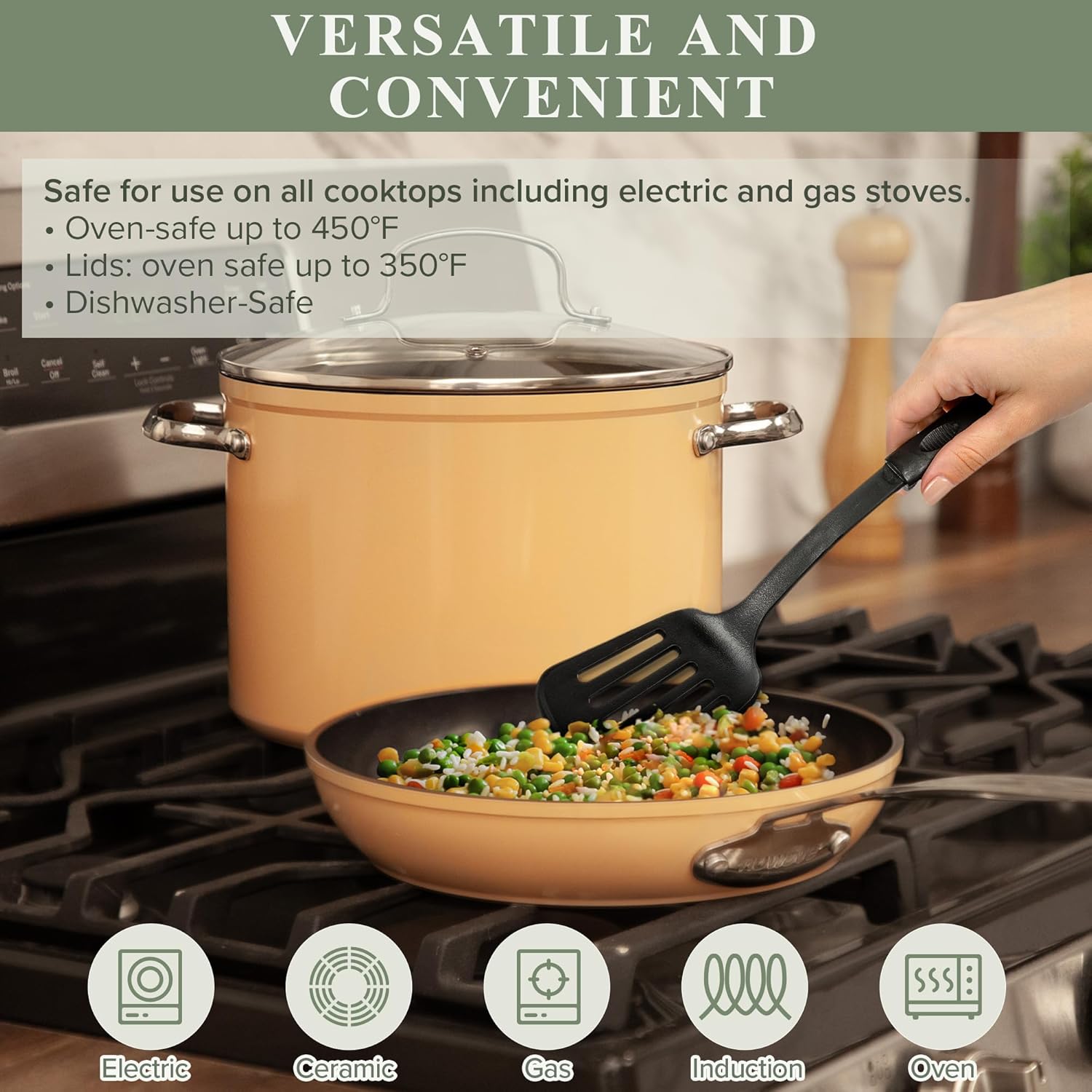 - INDUCTION READY & EVEN HEAT DISTRIBUTION – Every cookware is bonded and reinforced with anti-warp SS plate on the bottom to make it induction ready. This bonding delivers fast, even heat distribution, and superior heat retention at any temperature.