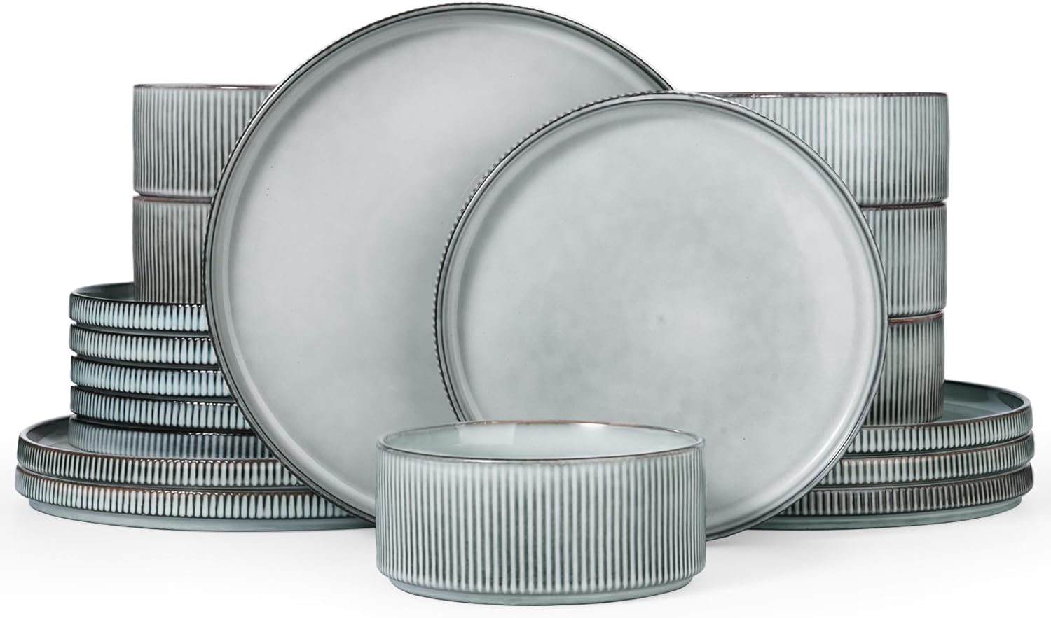 - [Stackable]: We are truly captivated by the design featuring vertical ribbed edges, but we also recognize the importance of optimal stacking. To address this, we have incorporated precision grooves at the base of this dish set, ensuring smooth and secure stacking