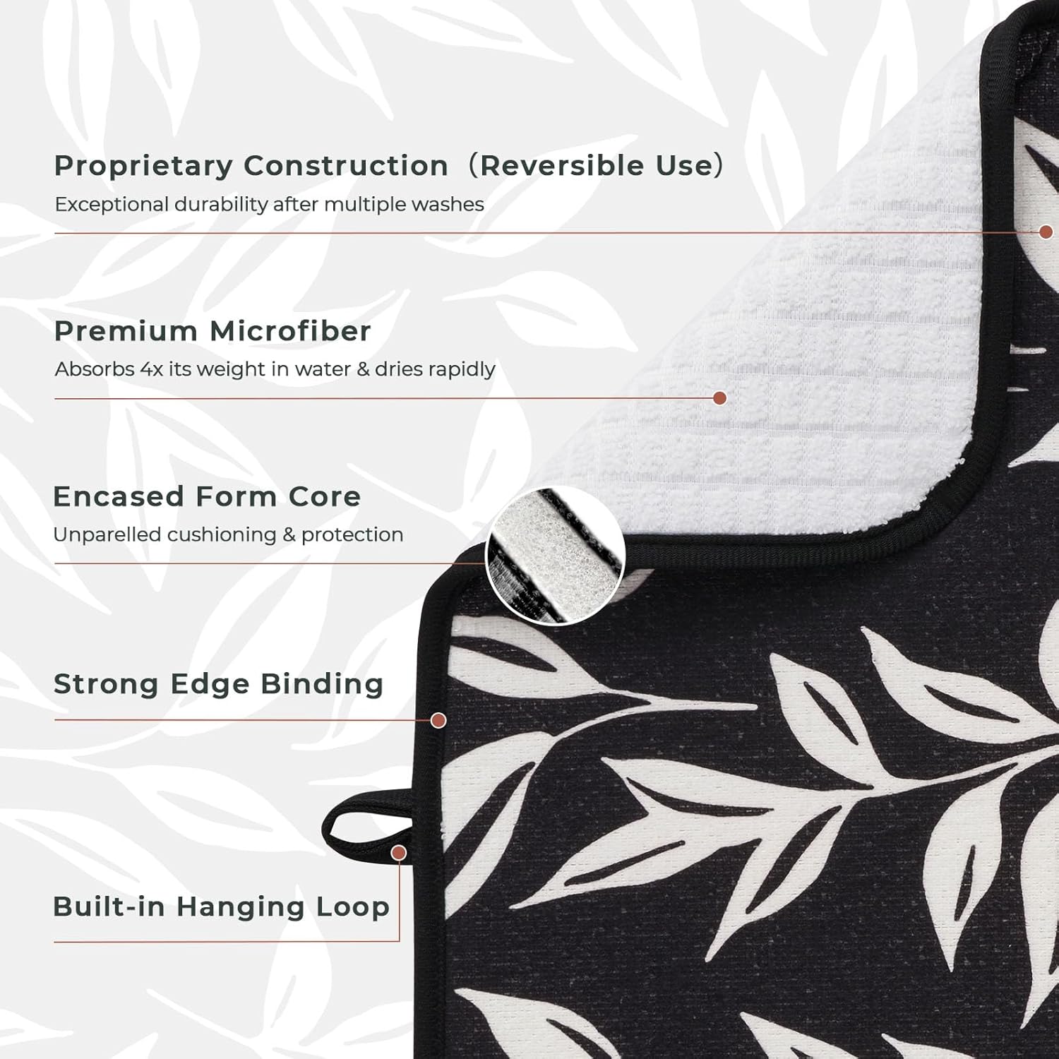 FRESHMINT Printed Dish Drying Mats for Kitchen Counter 2 Pack Absorbent Reversible Drying Mats Microfiber Kitchen Countertop Protector Dishes Drying Pad Extra Large 18"x16" Dish Mat