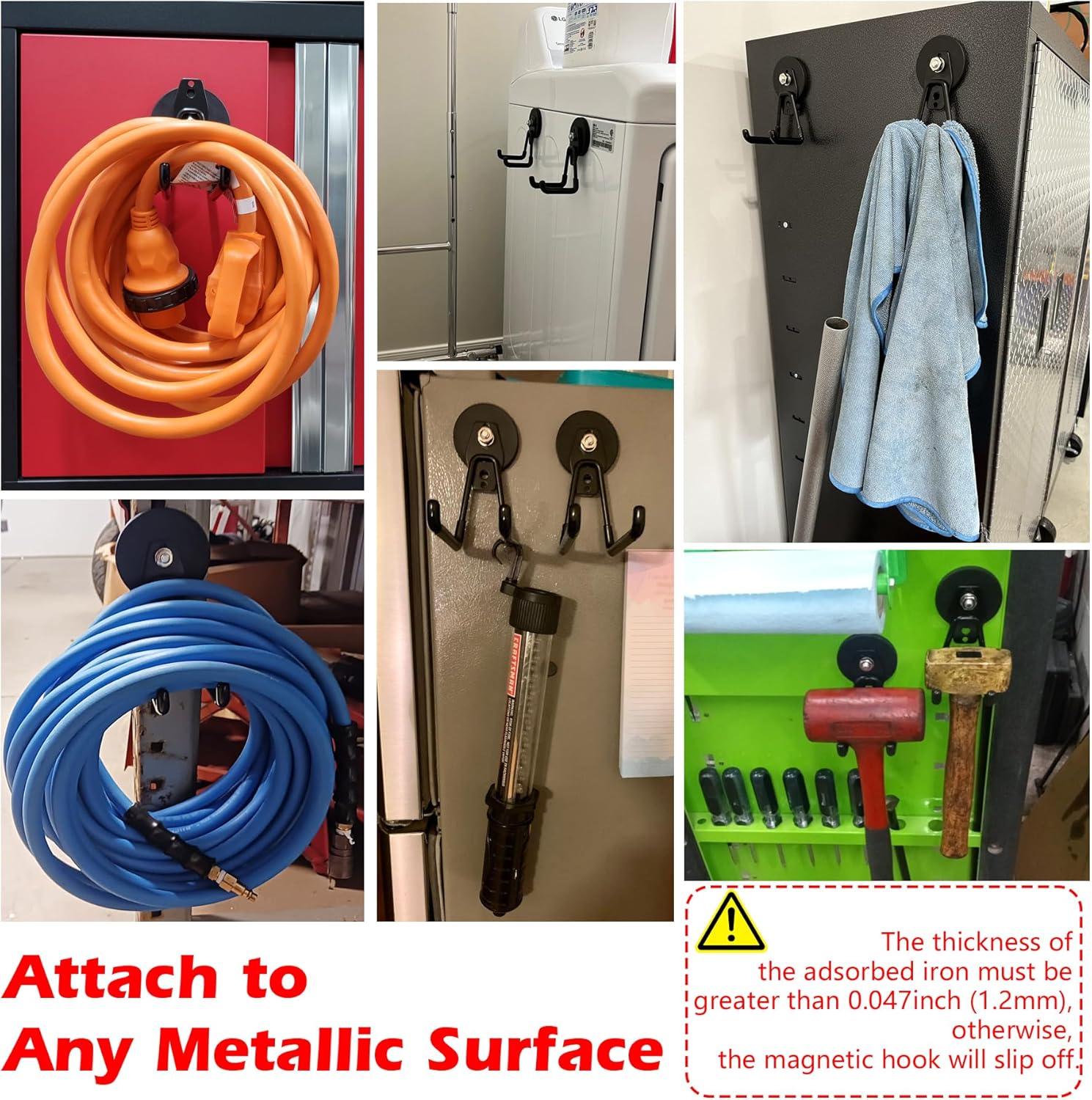 - [Anti-slip Rubber Coated Magnet]: Anti-rust and anti-scratch magnetic base, heavy-duty magnet hooks can stick firmly to any metallic surface and will not damage or scratch tool boxes, tool cabinets, or metal cabinets.