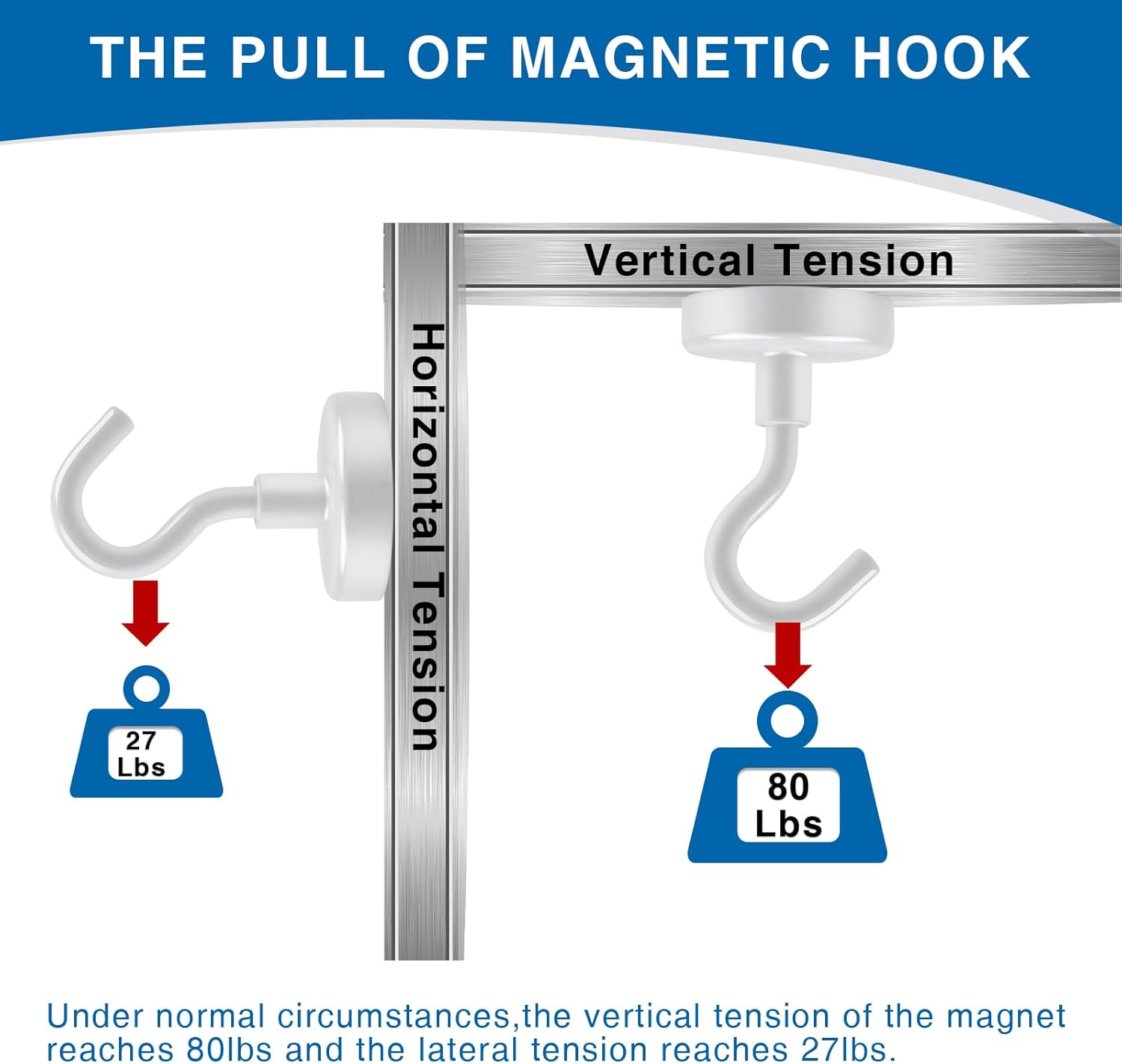 - 【MAGNETIC HOOKS】With our magnetic hooks, you can get over 80LBS of pulling force vertically and 27LBS horizontally. These colorful metal magnetic hooks for cruise essentials are very sturdy and perfect for hanging the items you need to make your life easier.