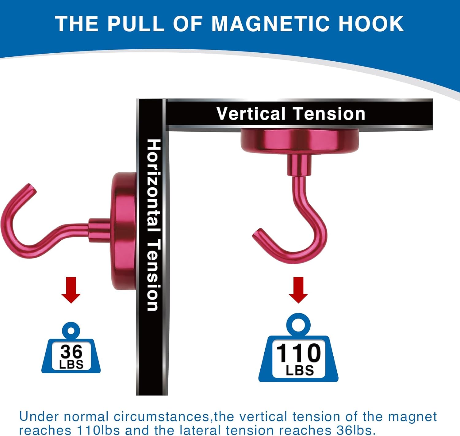 - 【MAGNETIC HOOKS】With our magnetic hooks, you can get over 110LBS of pulling force vertically and 36LBS horizontally. These colorful metal magnetic hooks for cruise essentials are very sturdy and perfect for hanging the items you need to make your life easier.