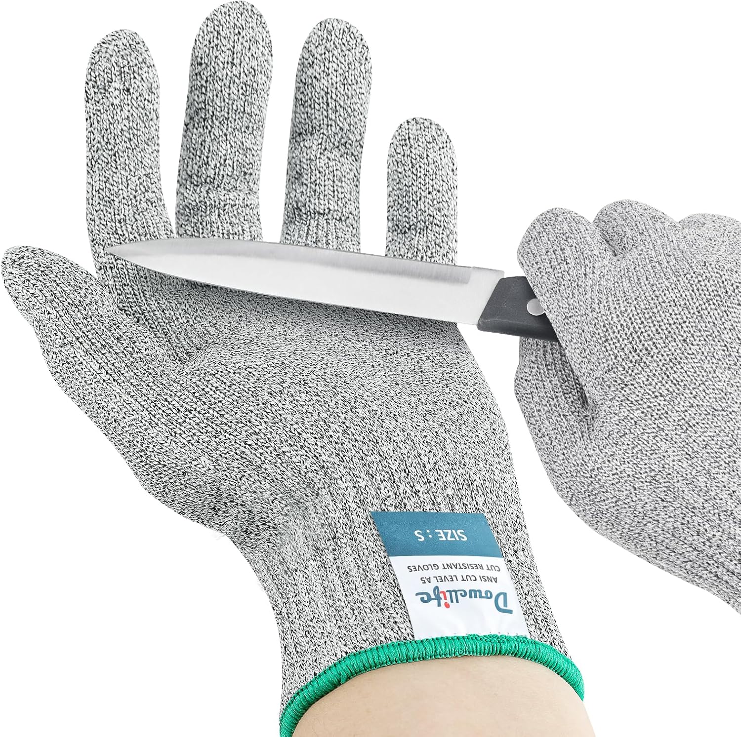 Dowellife Soft Level 9 Cut Resistant Gloves Food Grade, Steel Wire Mixed Kitchen Safety Gloves for Chef Oyster Shucking Mandoline Knife Butcher Meat Cutting Carving (Large)