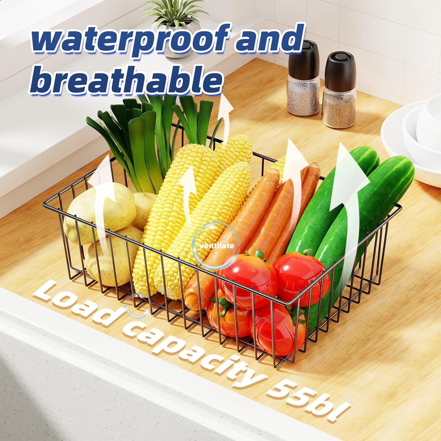 - Sturdy Wire Baskets: These baskets are made of durable steel wire with a durable rust and corrosion resistant coating and can hold up to 40 pounds
