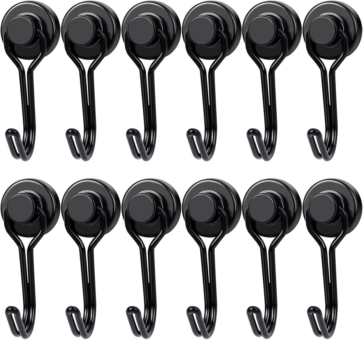 E BAVITE Swivel Swing Magnetic Hooks, 30LB(12pack) Refrigerator Magnet Hook,Strong Neodymium Magnets, Perfect for Refrigerator and Other Surfaces,60mm(2.36in) in Length