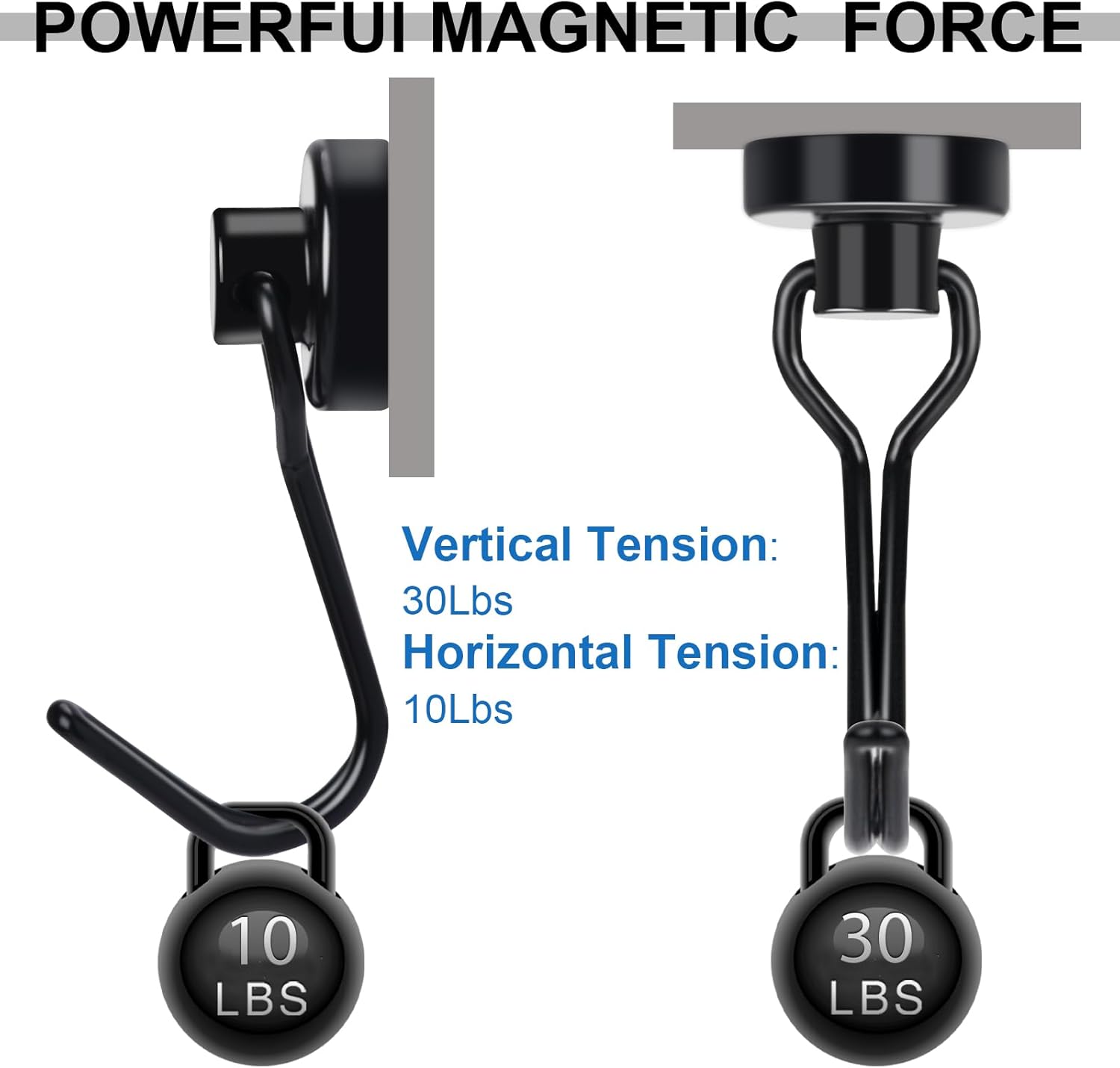 - 【Friendly Reminder】:The maximum bearing capacity of the black magnet hook is about 30LBS in the vertical direction and 10LBS in the horizontal direction. The bearing capacity of the black magnet hook is affected by the smooth and flat contact surface.