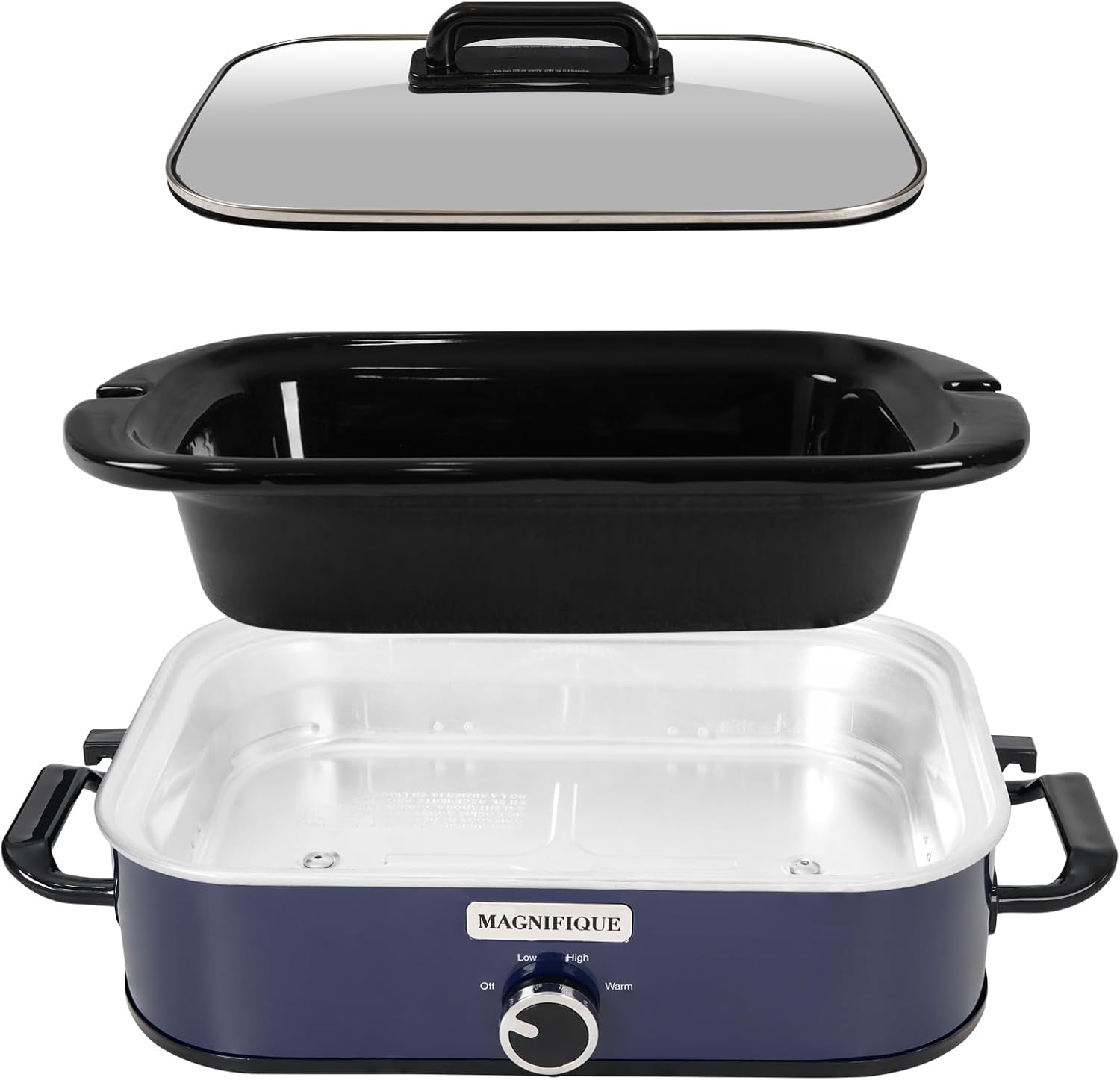 4-Quart Slow Cooker with Casserole Manual Warm Setting - Perfect Kitchen Small Appliance for Family Dinners, Dishwasher Safe Crock, Blue