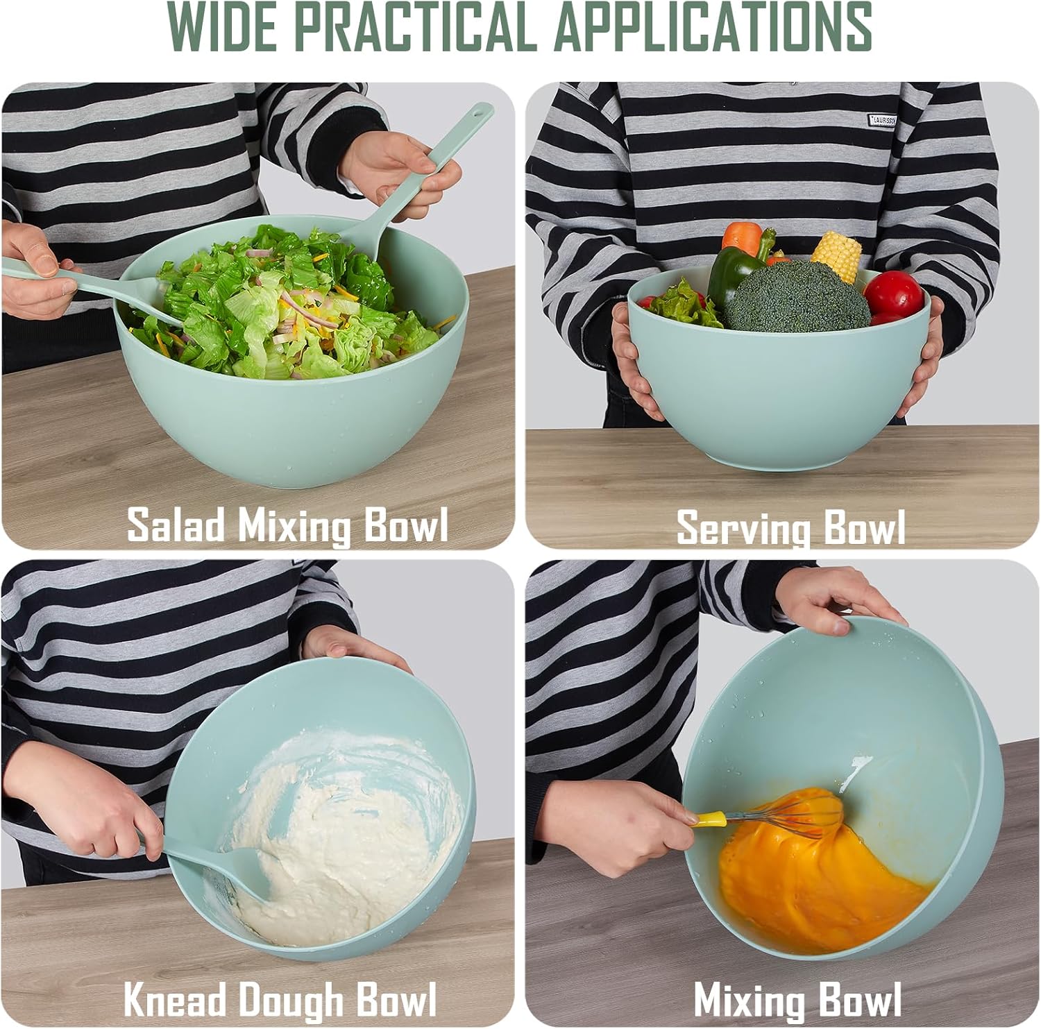 11.3" Extra Large Salad Bowl with Wooden Lid & Servers, 208Oz, Oversized Bamboo Fiber Salad Serving Set with Utensils for Home/Kitchen, Big Lightweight Bowl for Mixing Salad,Fruit,Pasta - Turquoise