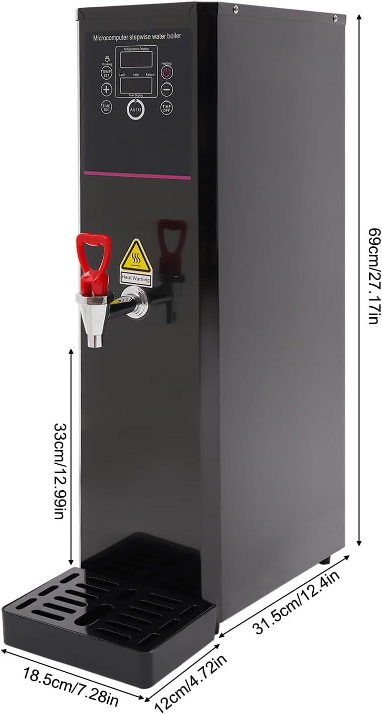 - 【Easy to Use & Good Material】: The smart digital display screen shows you the temperature in real-time and lets you see all the functions at a glance. The sensitive keys allow you to adjust easily. You can also set on and off times for your convenience.This commercial water boiling machine and dispenser mainly uses 304 stainless steel for the material, with high hardness, good performance of corrosion and rust resistance, making you drink it with peace of mind.