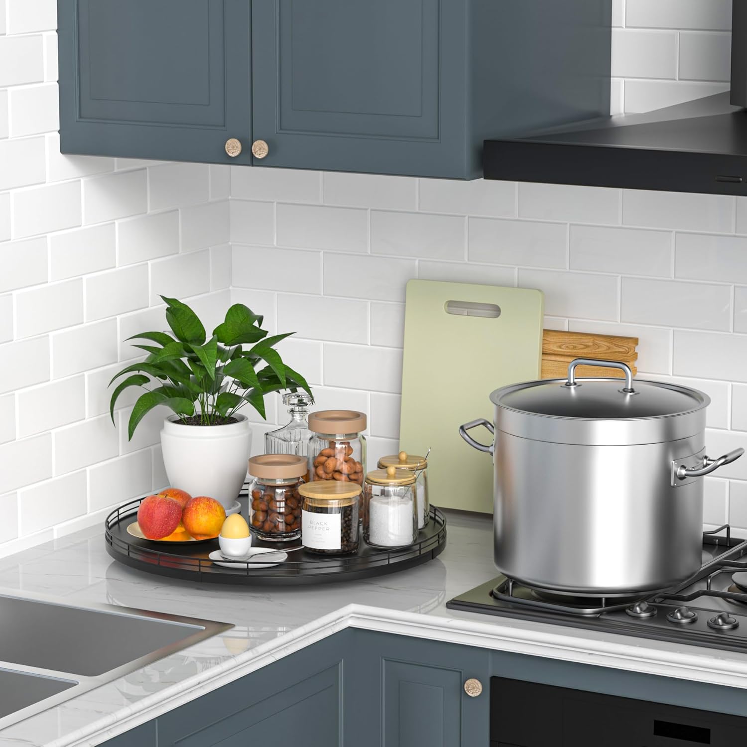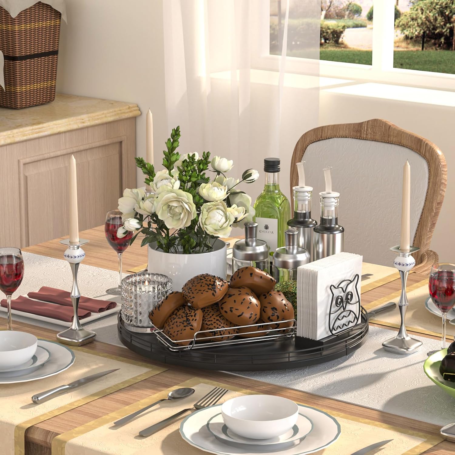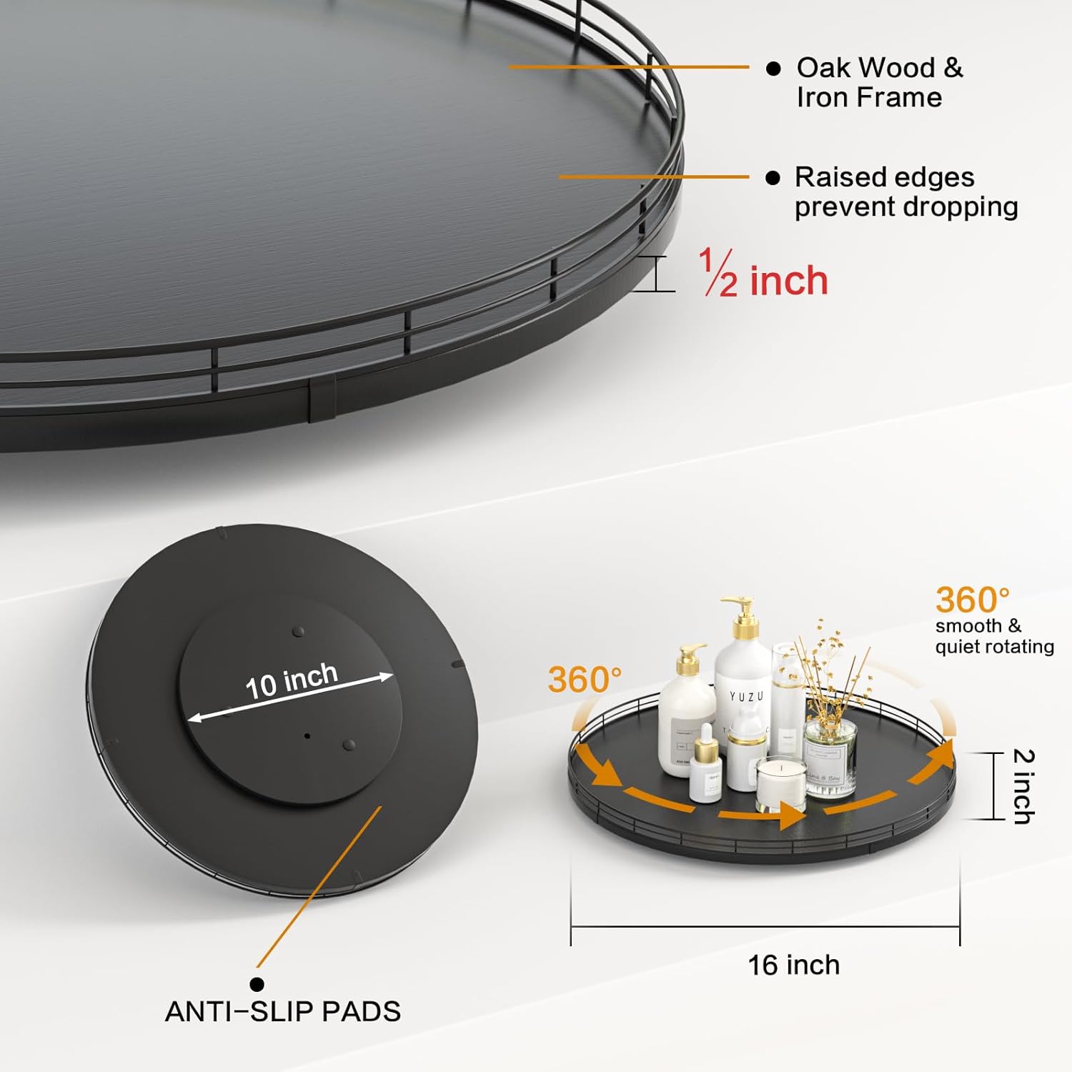 16" Oak Wooden Lazy Susan Turntable for Dining Table, Large Round Lazy Susans Organizer for Kitchen Countertop, Tabletop 360ยฐRotating Tray for Spice Organization and Storage Black Home Decor