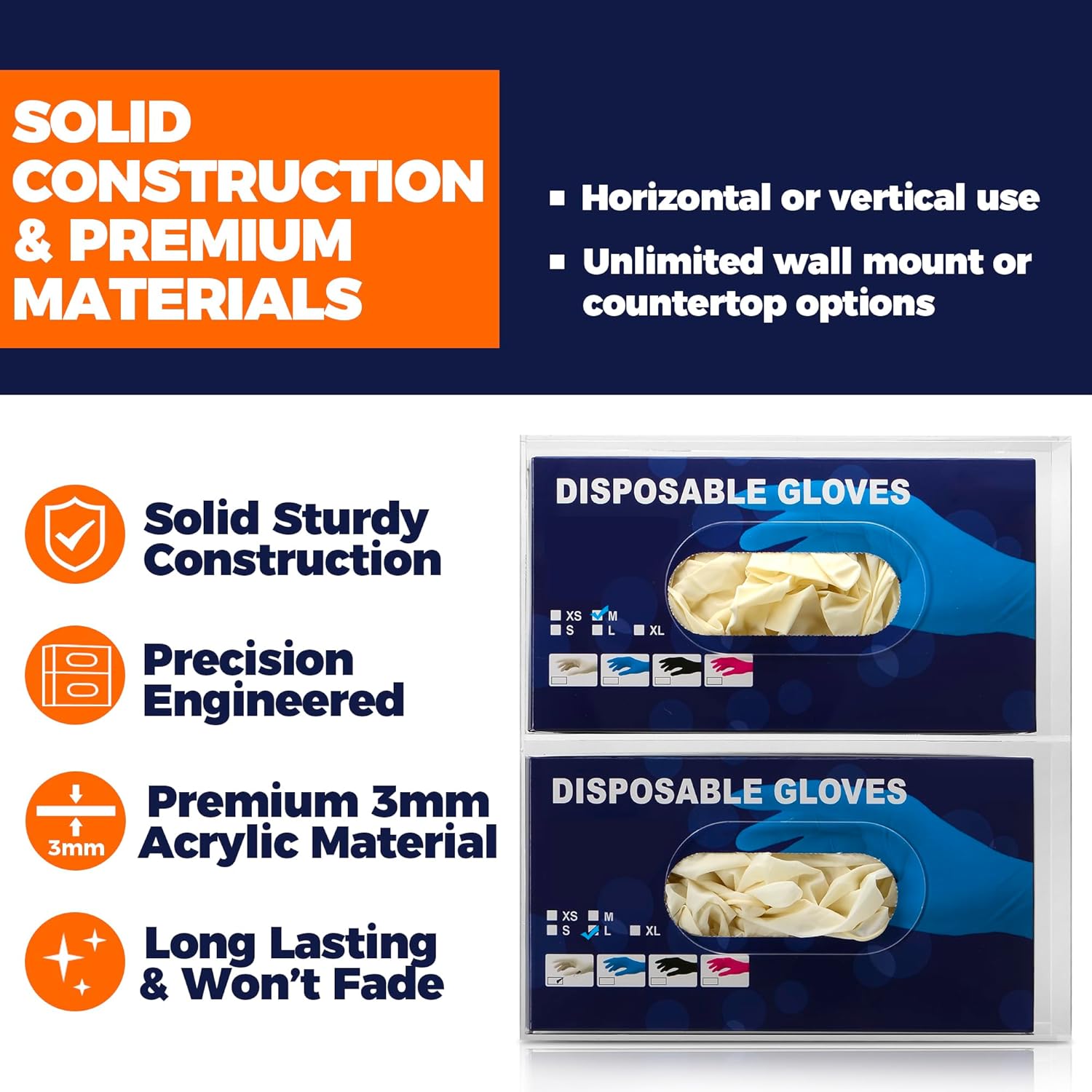 - Grab-and-Go Glove Storage - Attending to patients, preparing meals or tinkering in the shop? You need our acrylic glove dispenser wall mount glove organizer to get ready for work! Lets you quickly take a pair of gloves, so you can work uninterruptedly.