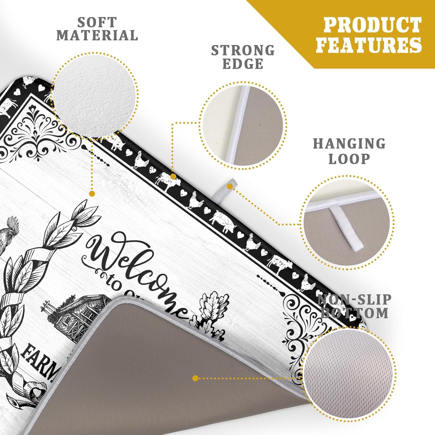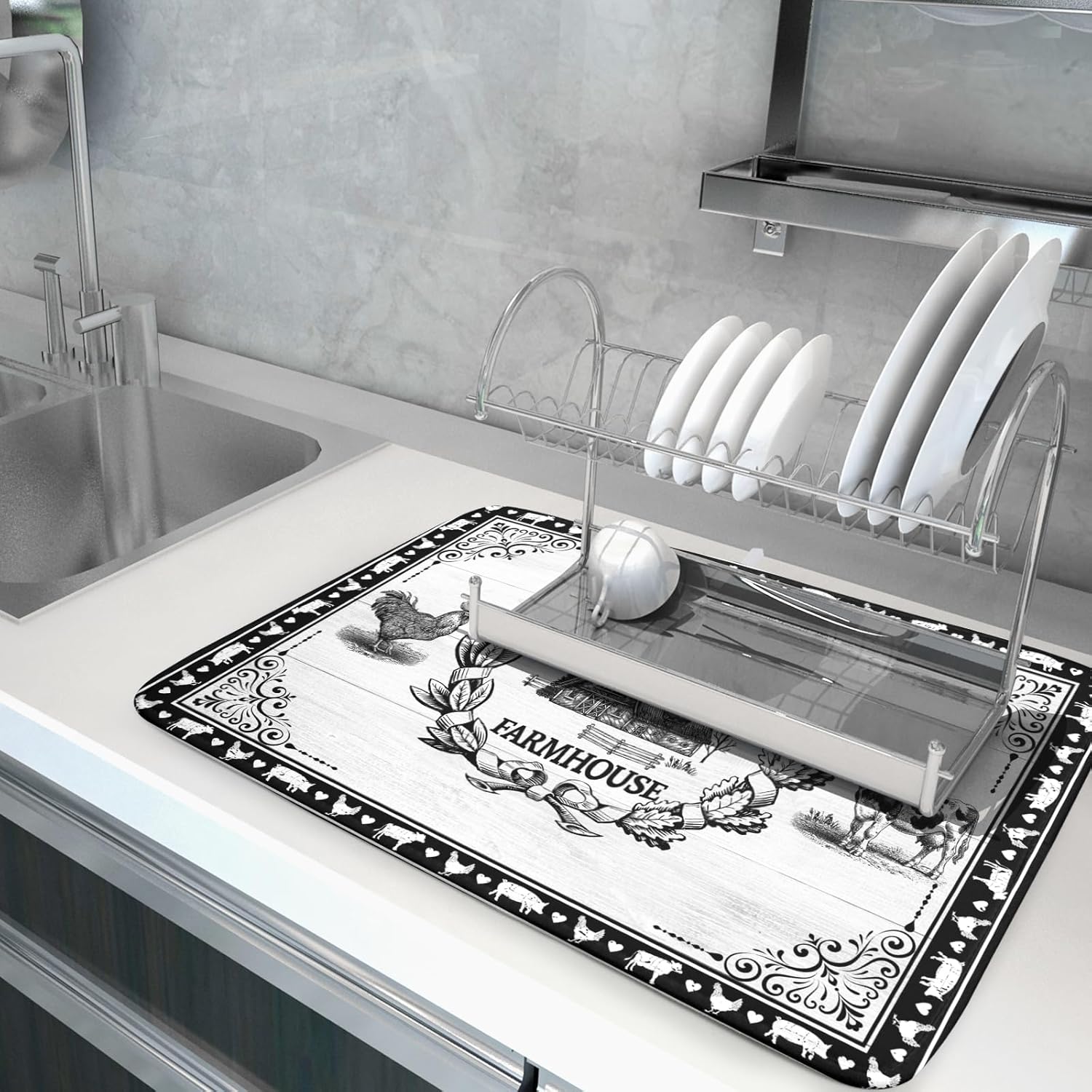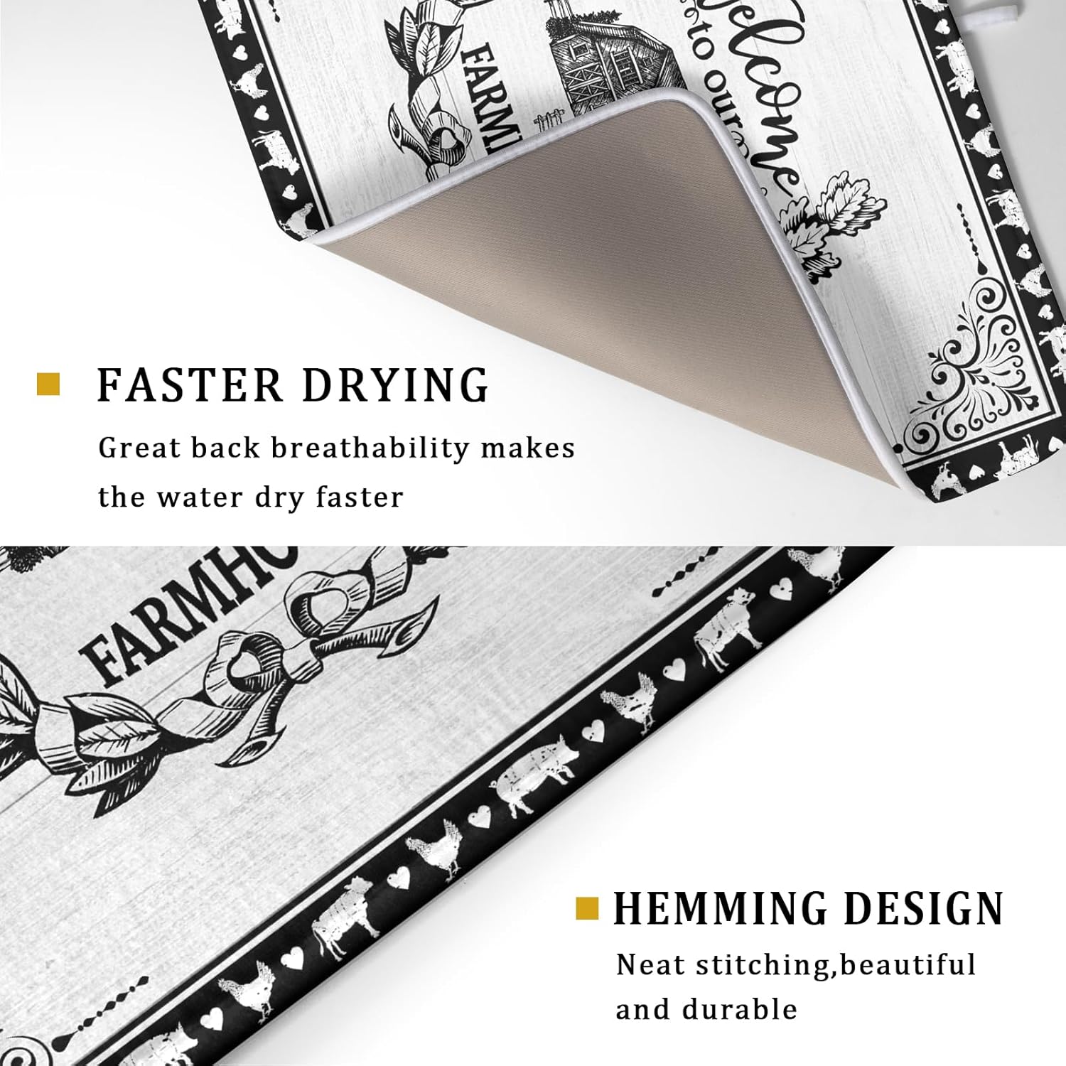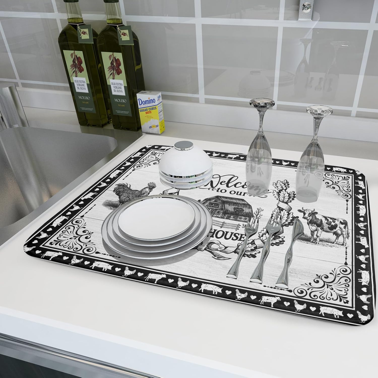 Farm Animal Dish Drying Mat 18x24 Inch Welcome to Our Farmhouse Microfiber Dish Drainer Pads Absorbent Fast Dry Kitchen Accessories