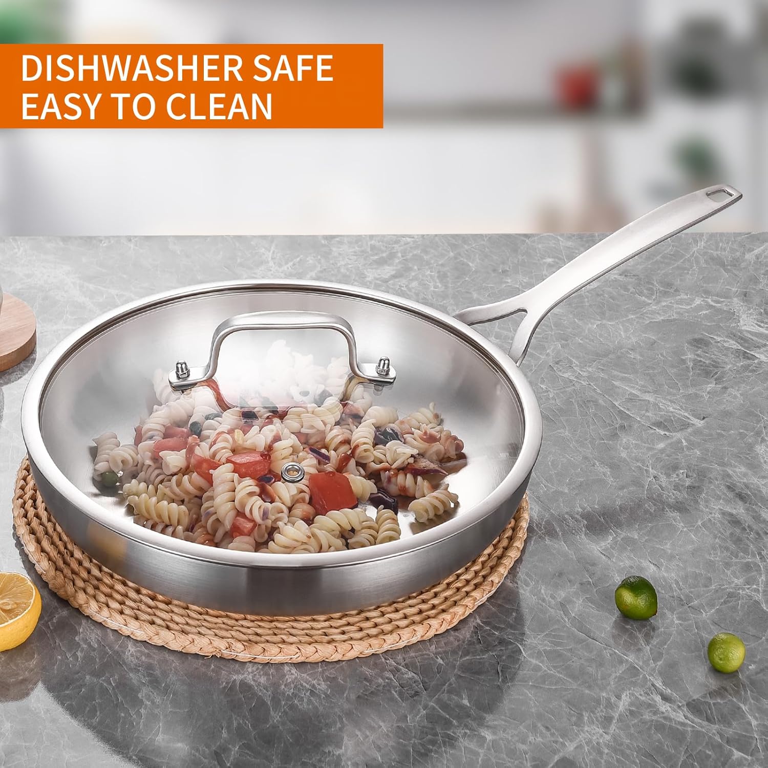- 【Practical and Elegance】Delarlo Tri-Ply Stainless Steel Pan Combines Ergonomic cookware Design and superior features for optimal cooking performance. The rounded and encapsulated rim for drip free pouring and easy transfers,Rivet-free surface to eliminate food traps