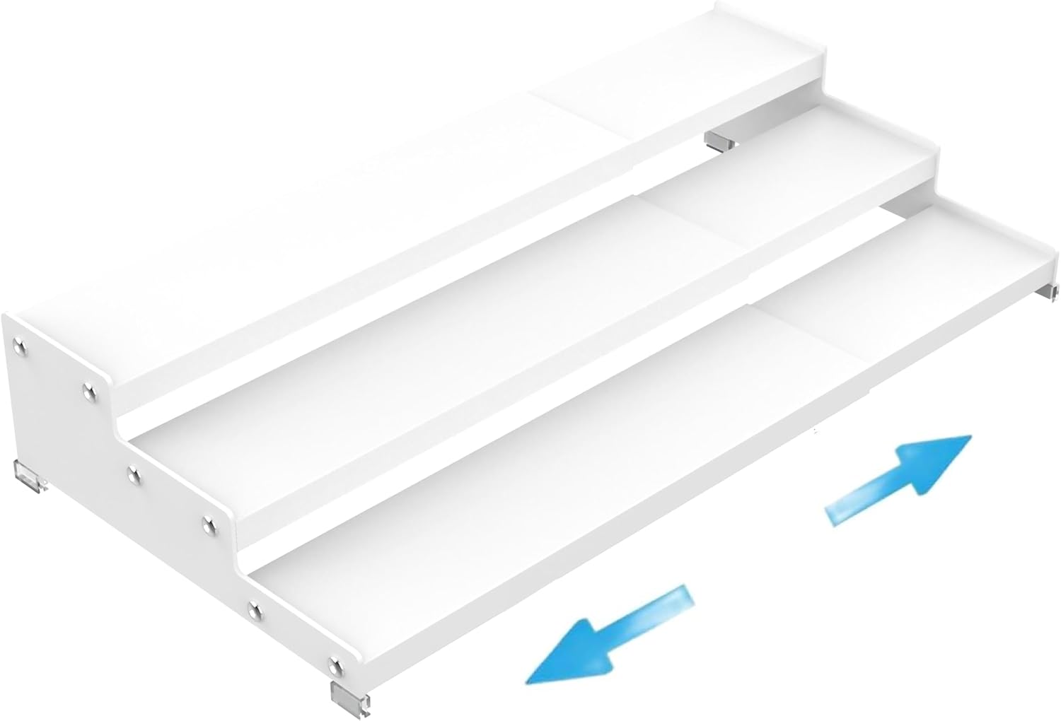 Expandable Spice Rack Storage organizer with 3-Tier step shelf cabinet,seasoning racks organizion.Great for Kitchen countertop shelves,Pantry and more(1Pack/White)