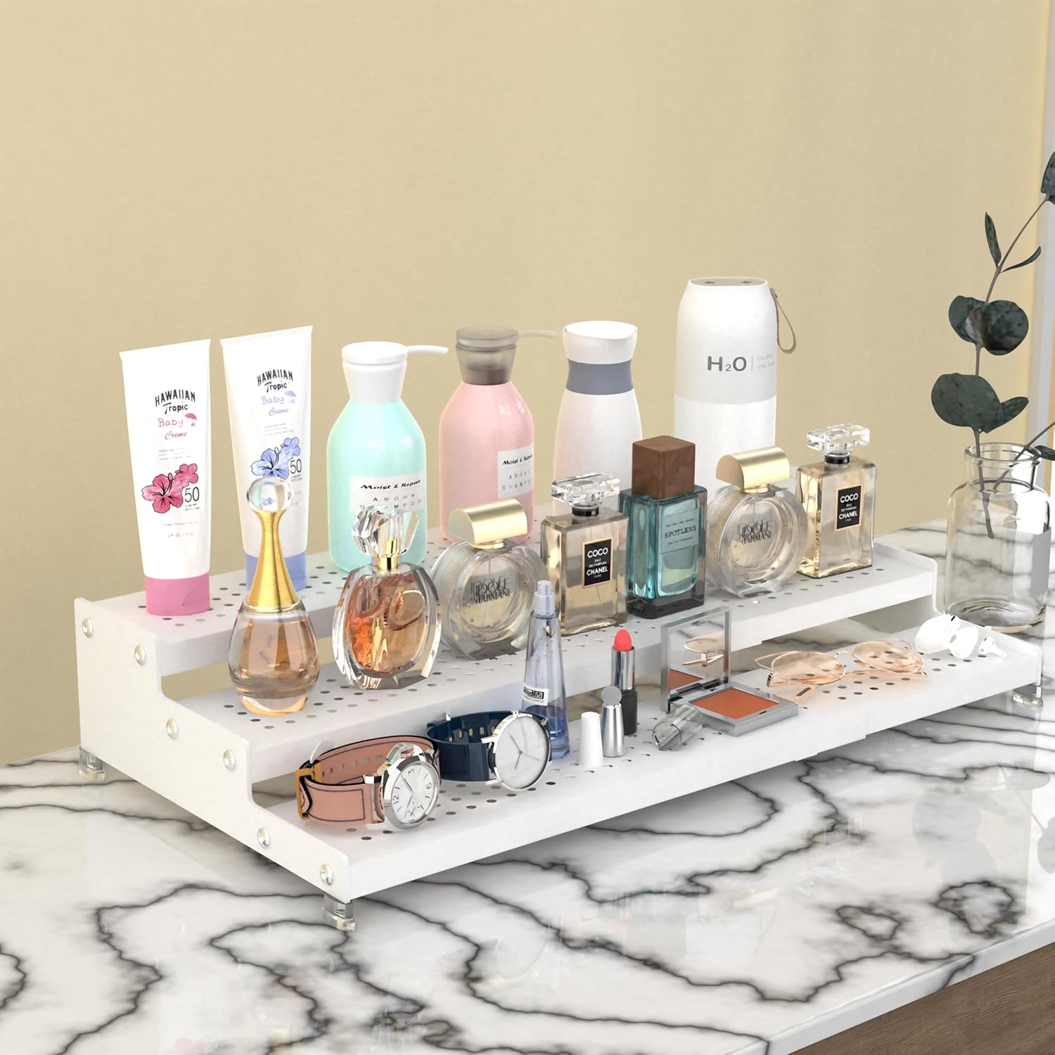 Expandable Spice Rack organizer with 3-Tier step shelf,Modern Design heavy duty,Non Skid and Visibility,Great for Kitchen Cabinet,Bathroom,dressing table,Cupboard, Pantry and more(1PACK/WHITE)