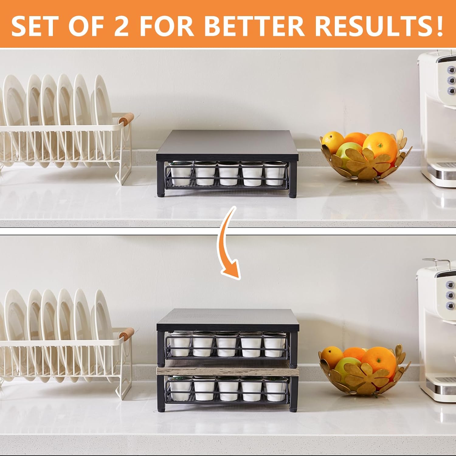- 【STURDY AND SIMPLE DESIGN】: The capsule pods storage organizer gives your quiality coffee a quiality storage. This coffee pod holder is firm and space saving. You can also put your coffee brewer or coffee maker on its large top suiface.