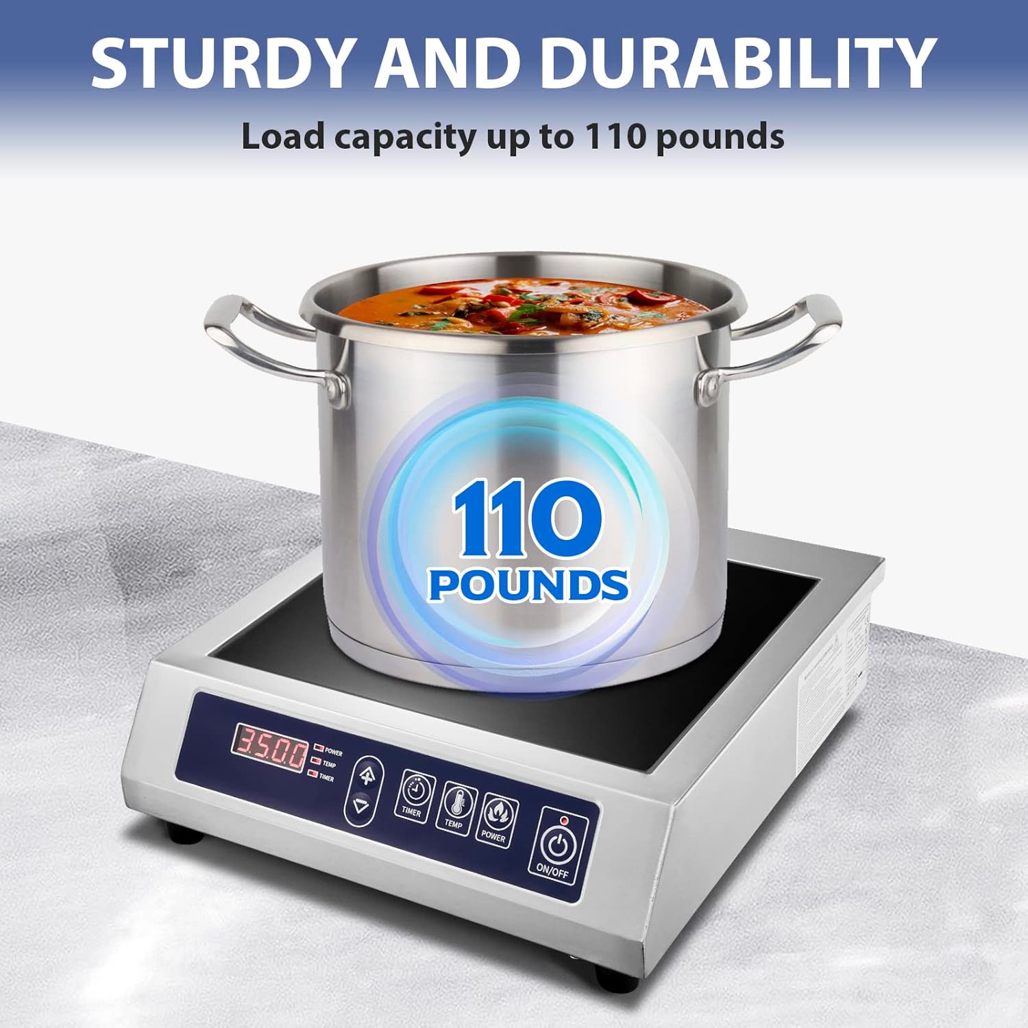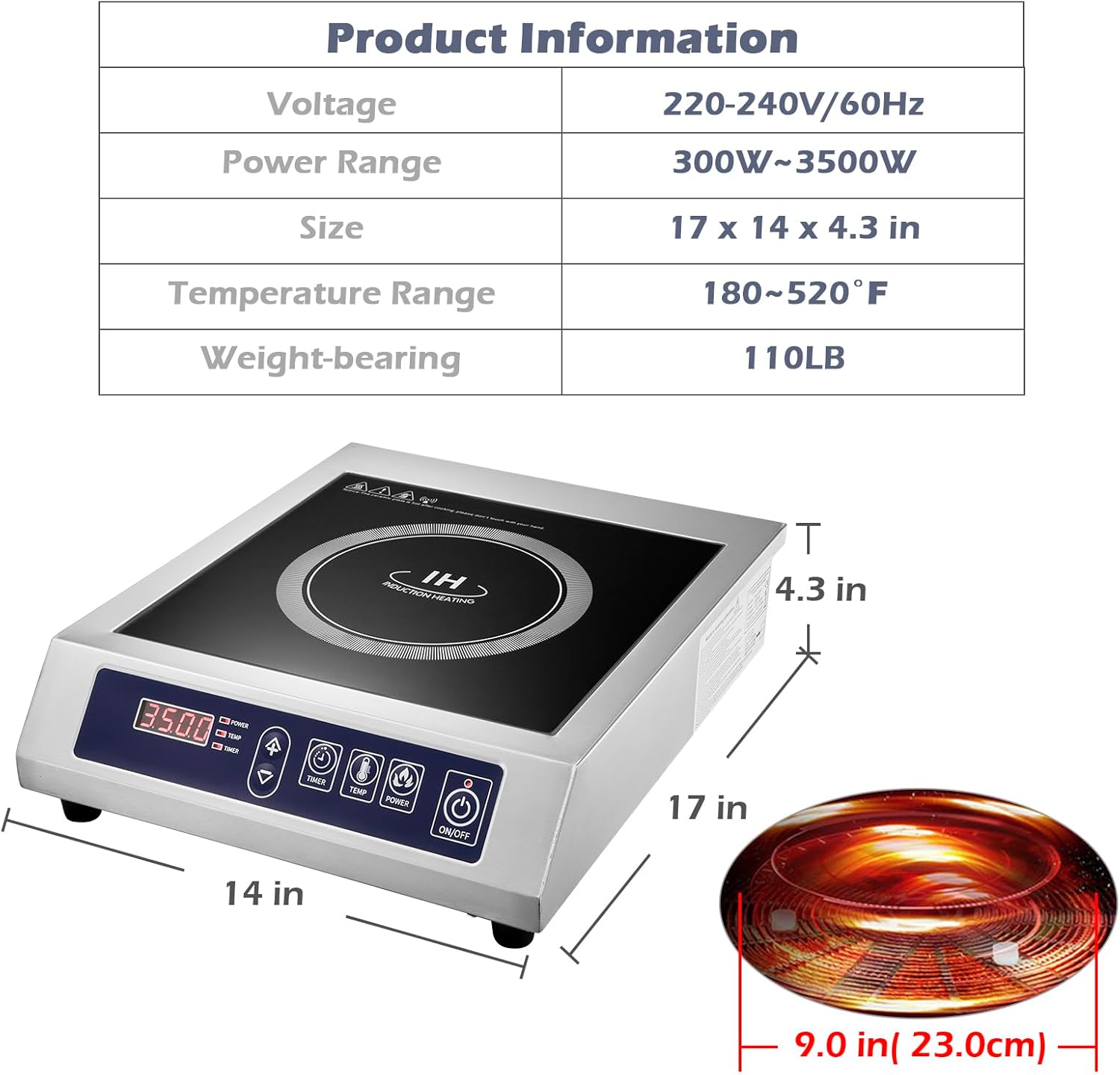 Commercial Induction Cooktop,3500W/ 240V Portable Electric Induction Countertop Burner with Stainless Steel Housing, Durable Commercial Induction Hot Plate for Hotel Restaurant School