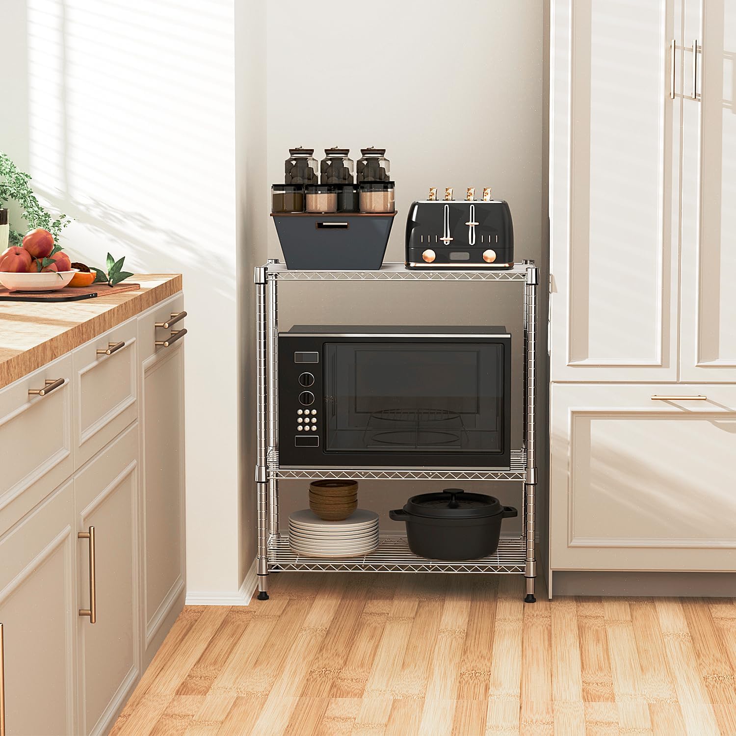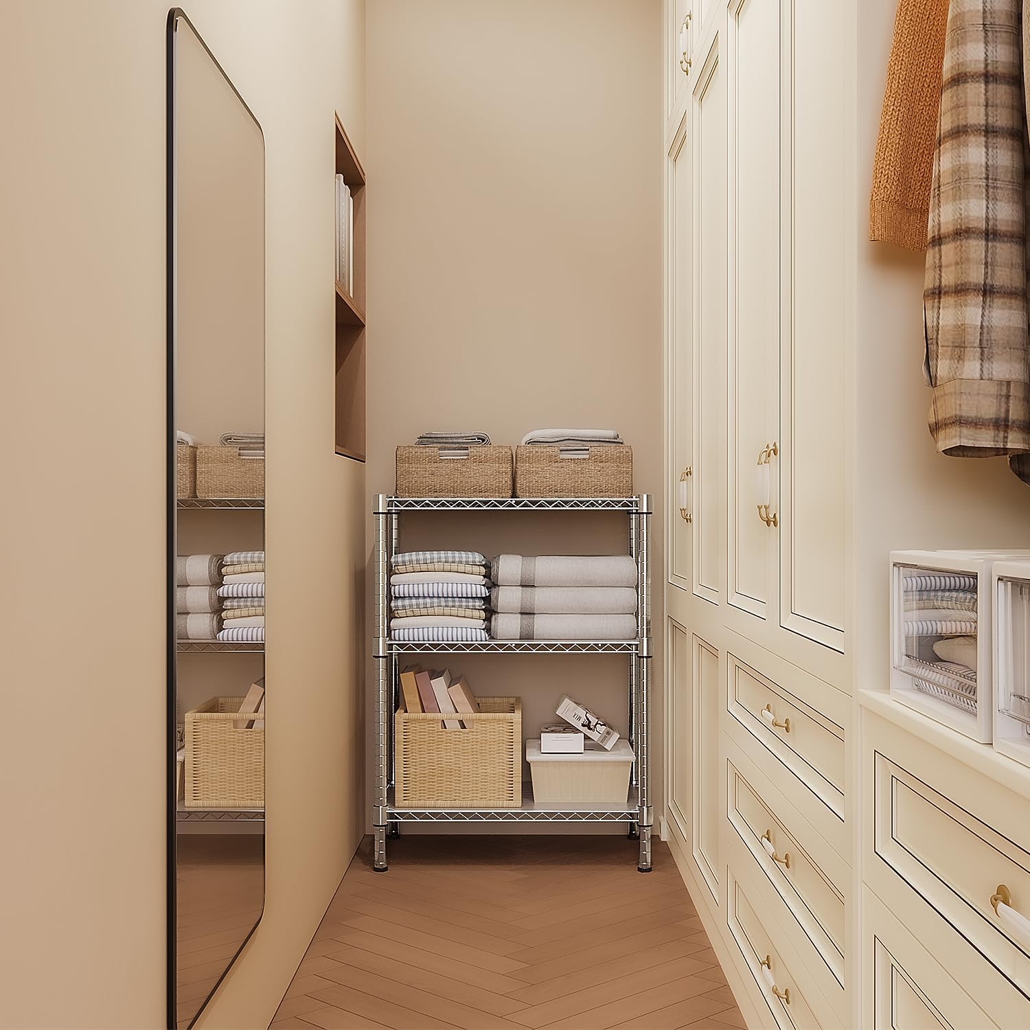 - IMPACT & SPACE-SAVING: This storage shelf is exquisitely designed to maximize efficiency in small spaces. Its multiple wire shelves provide ample vertical storage capacity, making it an ideal choice for narrow areas or corners.