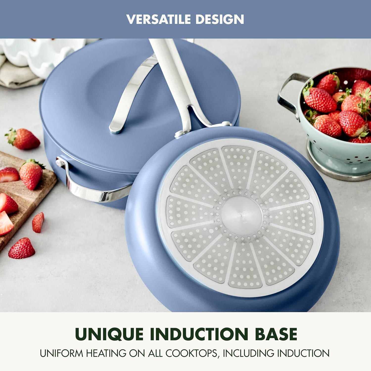 GreenPan Nova 10-Piece Cookware Pots & Pans Set, Oprah’s Favorite Things 2024, PFAS-Free Ceramic Nonstick, Fry, Sauté, Stockpot, Utensils, Lids, Induction Suitable, Dishwasher & Oven Safe, Ocean Blue