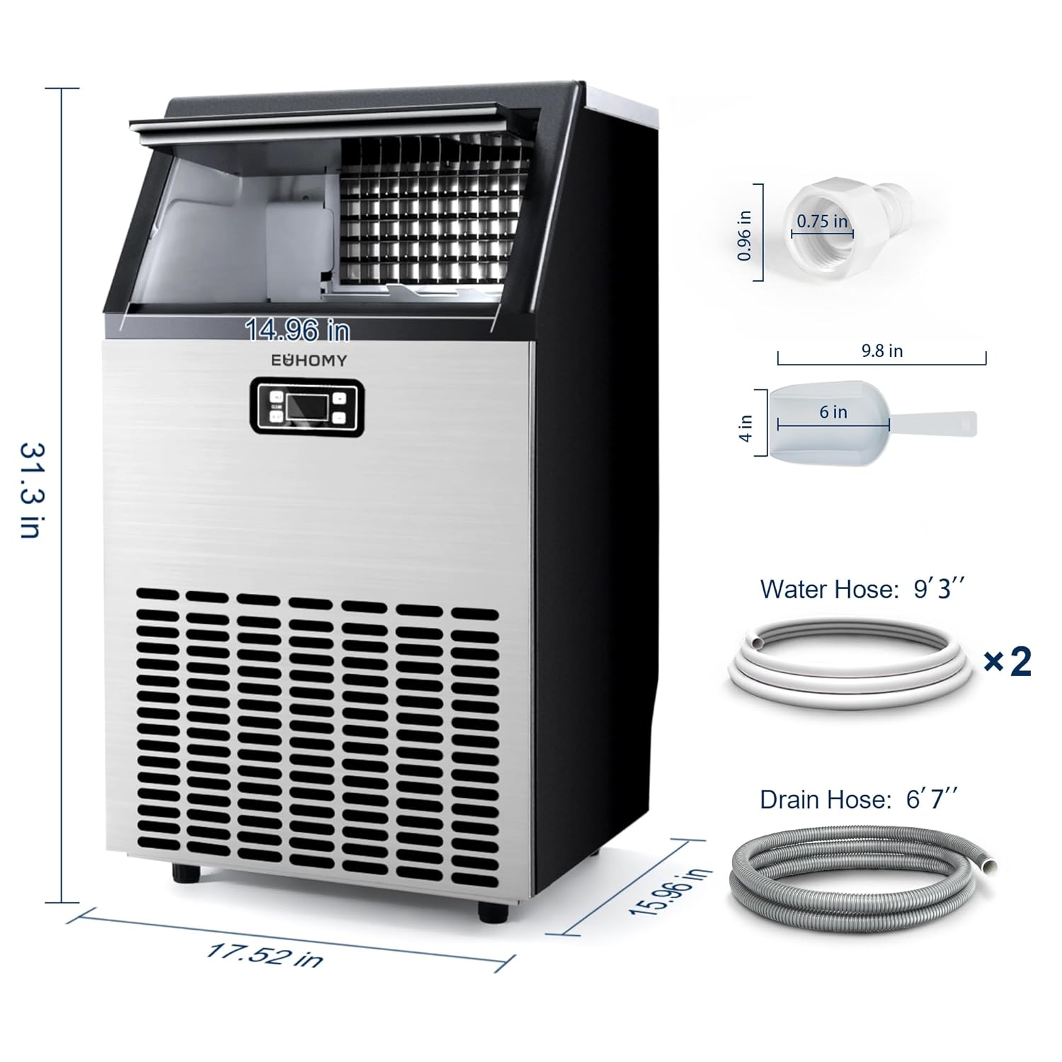 EUHOMY Commercial Ice Maker Machine, 150lbs/24H Stainless Steel Under Counter ice Machine with 33lbs Ice Storage Capacity, Freestanding Ice Maker.