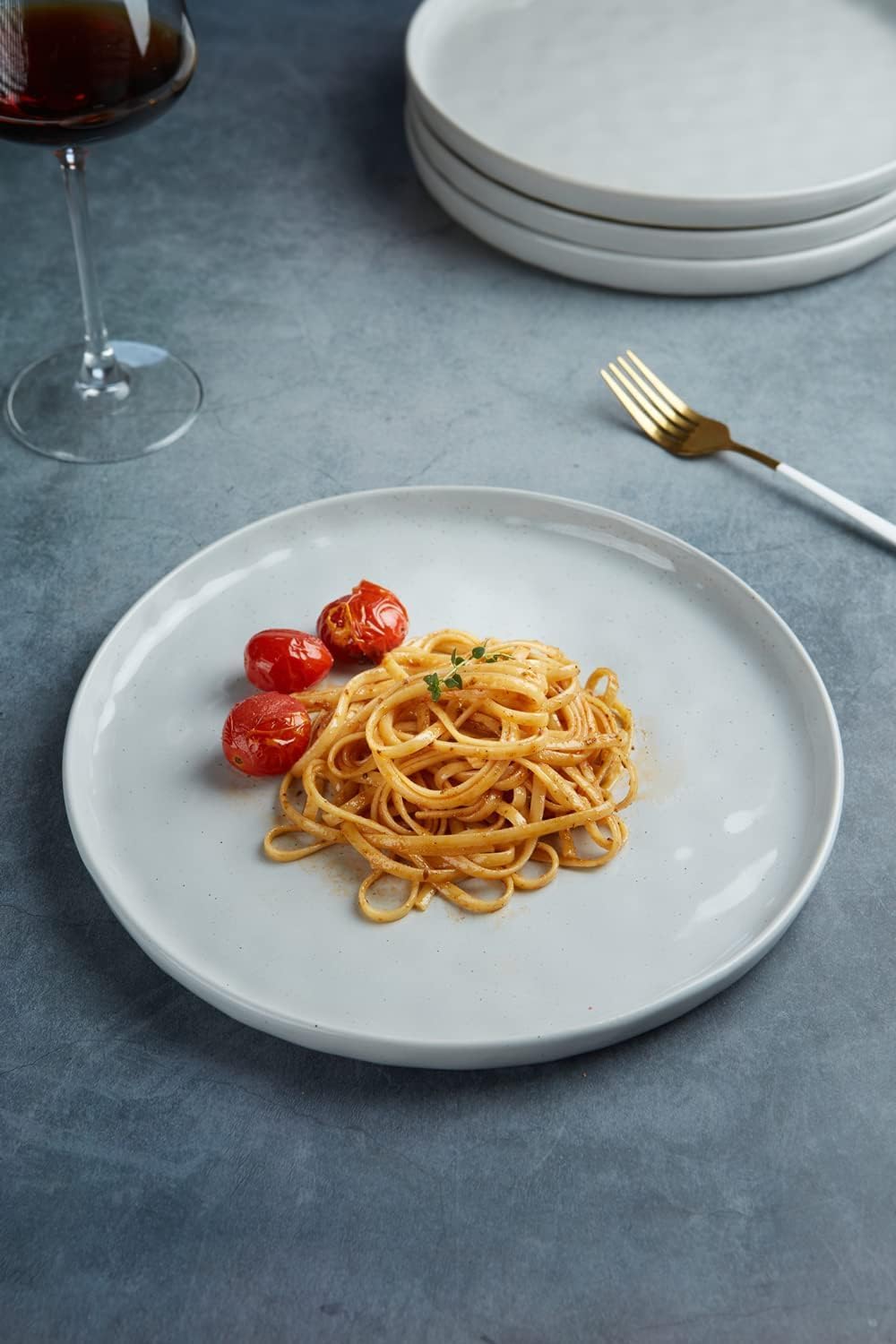 - 【Scratch Resistant】Dinnerware is fired at 2340℉ for 13.5 hours to form a strong scratch resistant surface. No need to worry about scratches from your forks or knives.