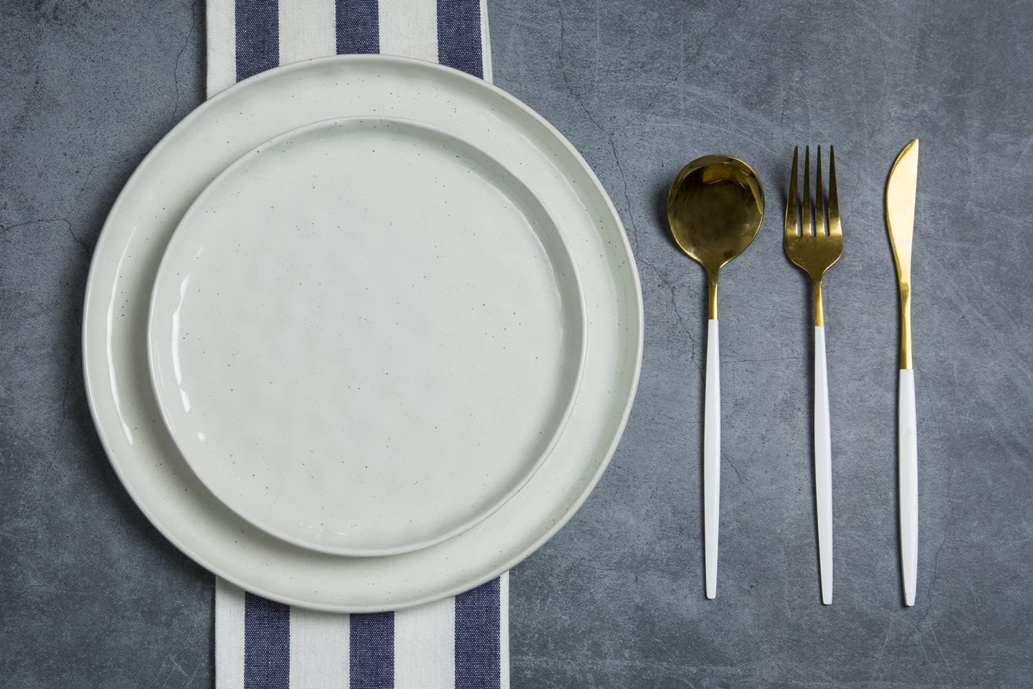 - 【What will you get?】This dinnerware set includes 8 pieces 10.25 inch dinner plates, 8 pieces 8 inch salad plates, 8 pieces 5.5 inch cereal bowls. This is a great combination for a family dinner party. You can safely use them to serve steaks, salads or desserts.