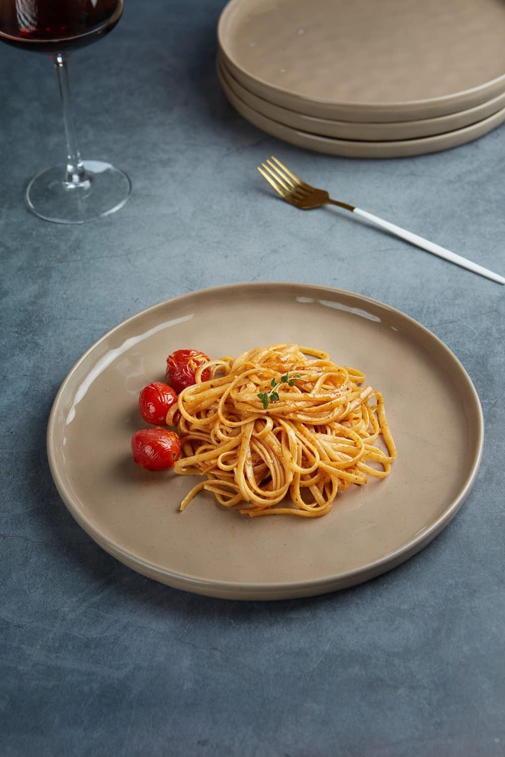 - 【Scratch Resistant】Dinnerware is fired at 2340℉ for 13.5 hours to form a strong scratch resistant surface. No need to worry about scratches from your forks or knives.
