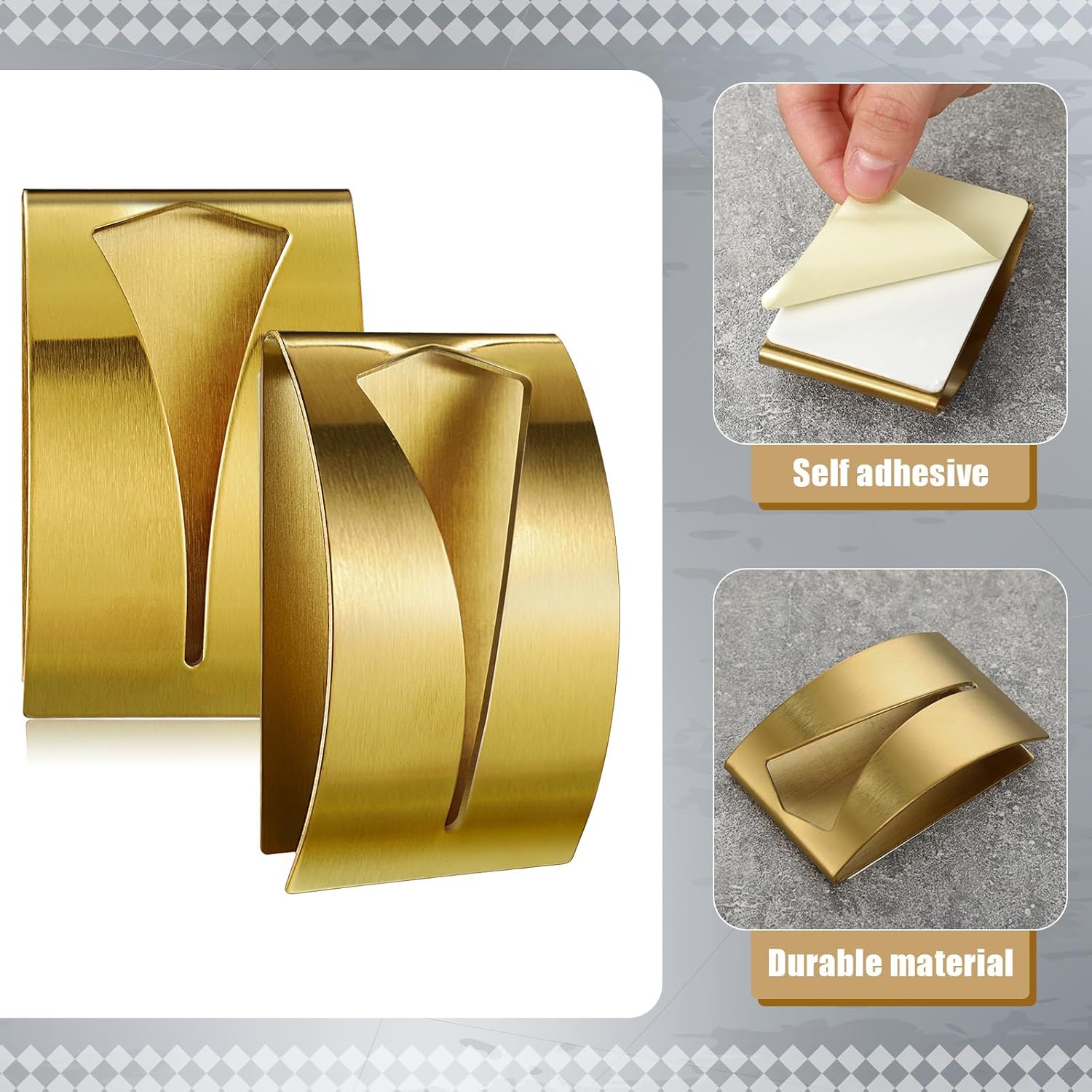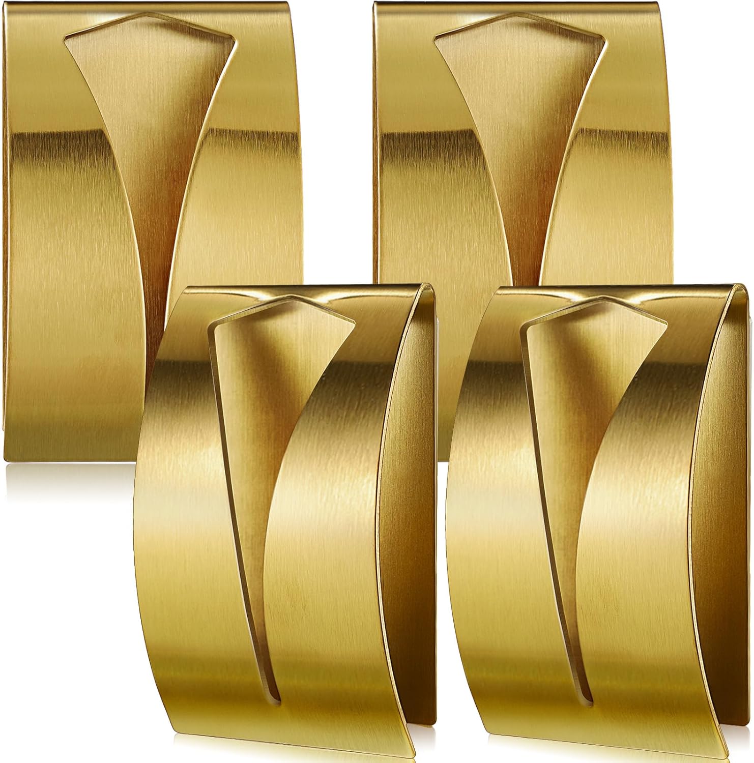 Boao 4 Pcs Self Adhesive Towel Hook Holder Grabber Stainless Steel Kitchen Dish Towel Hook Wall Mount Non Drilling Hangers Rack Hand Tea Holders for Bathroom Accesories Kitchen Gadgets(Gold)