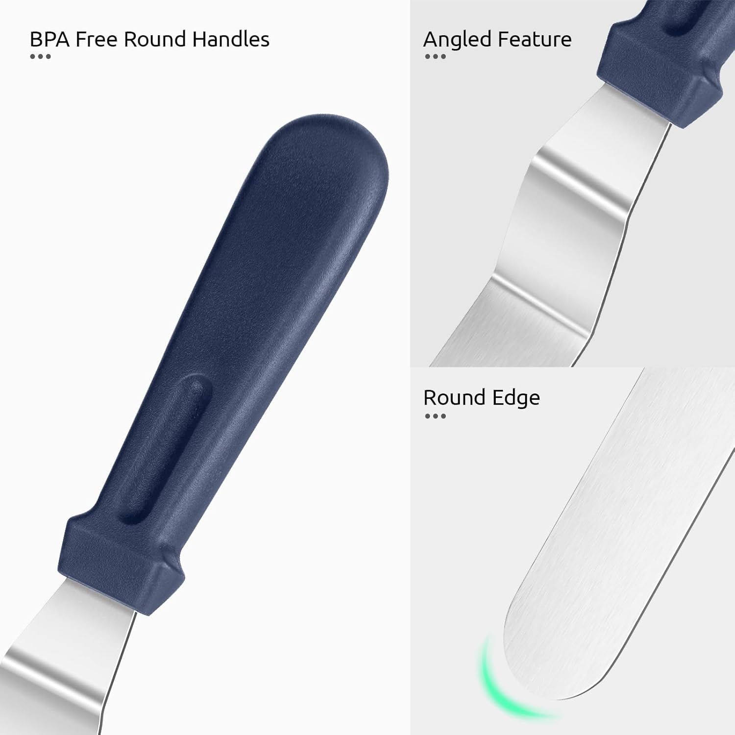 U-Taste Offset Spatula for Cake: Angled Icing Spatula Set with Wide 6", 8", 10" Blade, Flexible Stainless Steel Pastry Decorating Frosting Metal Baking Spreader for Cupcake (Set of 3, Midnight Blue)