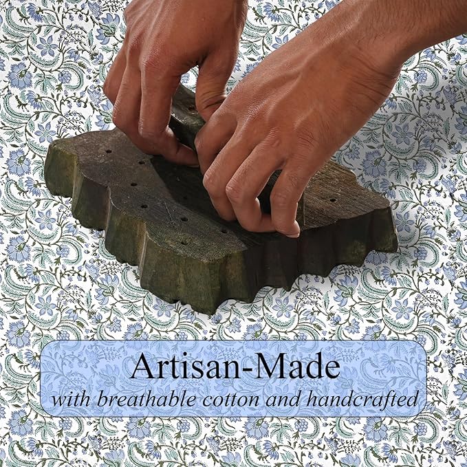 Ridhi Columbia Blue Hand Block Print Cotton Rectangle Tablecloth 140 x 72 inches Reusable Table Cover Decorative Everyday Use for Dining Room, Farmhouse, Home, Party, Festive & Wedding, Fall
