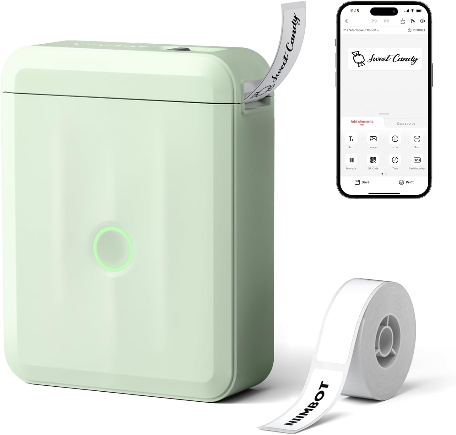 NIIMBOT D110 Upgraded Version Mini Label Maker Machine with Tape, Portable Bluetooth Thermal Printer, Sticker Labeler with Multiple Templates for Office Organization Home Kitchen School, Green