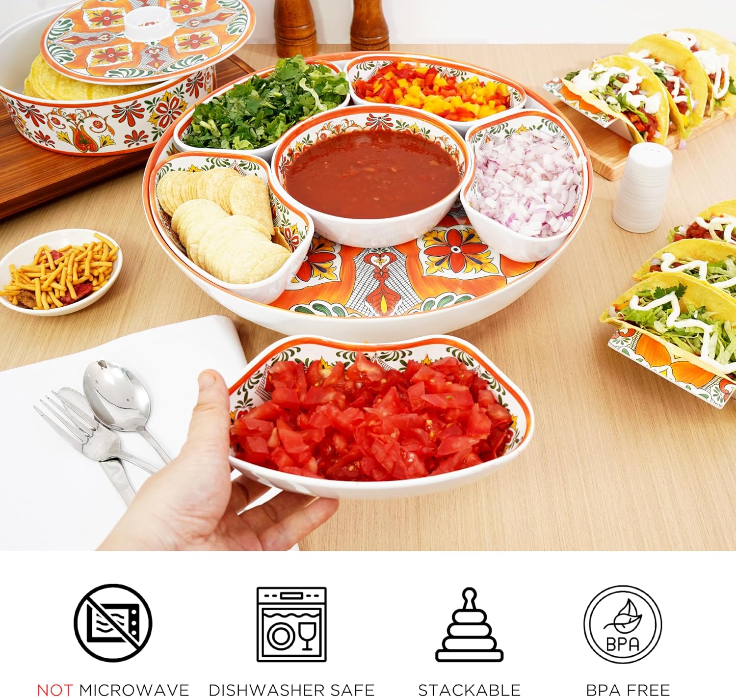 TP Taco Bar Serving Set, Melamine Serving Platter with Lazy Susan, Serving Tray and Bowls, Taco Tuesday Kit Snack Holder for Party and Fiesta, Talavera Bloom