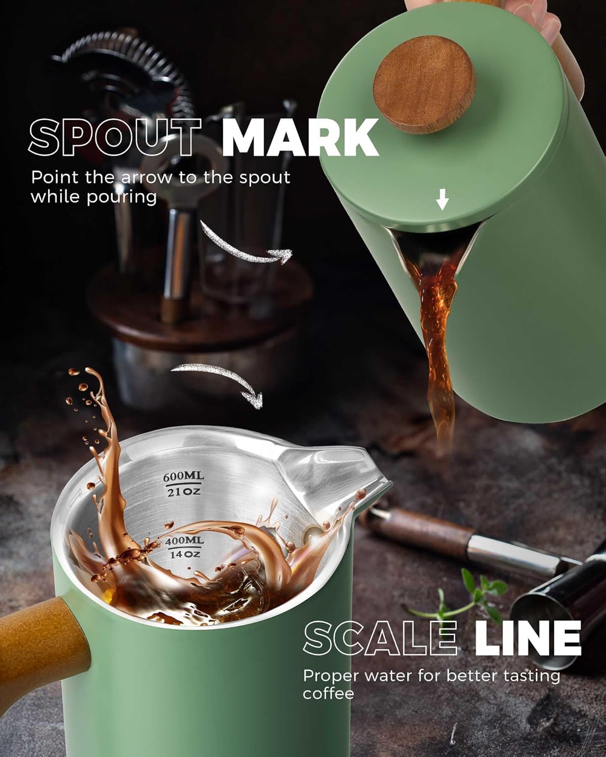 - EXQUISITE COLOURS & REAL WOOD HANDLE: Featuring a long-lasting, scratch-resistant exterior paint and a real wood handle, the french press cofffee maker boasts a vintage look that decorates every corner of your home and enhances your quality of life.