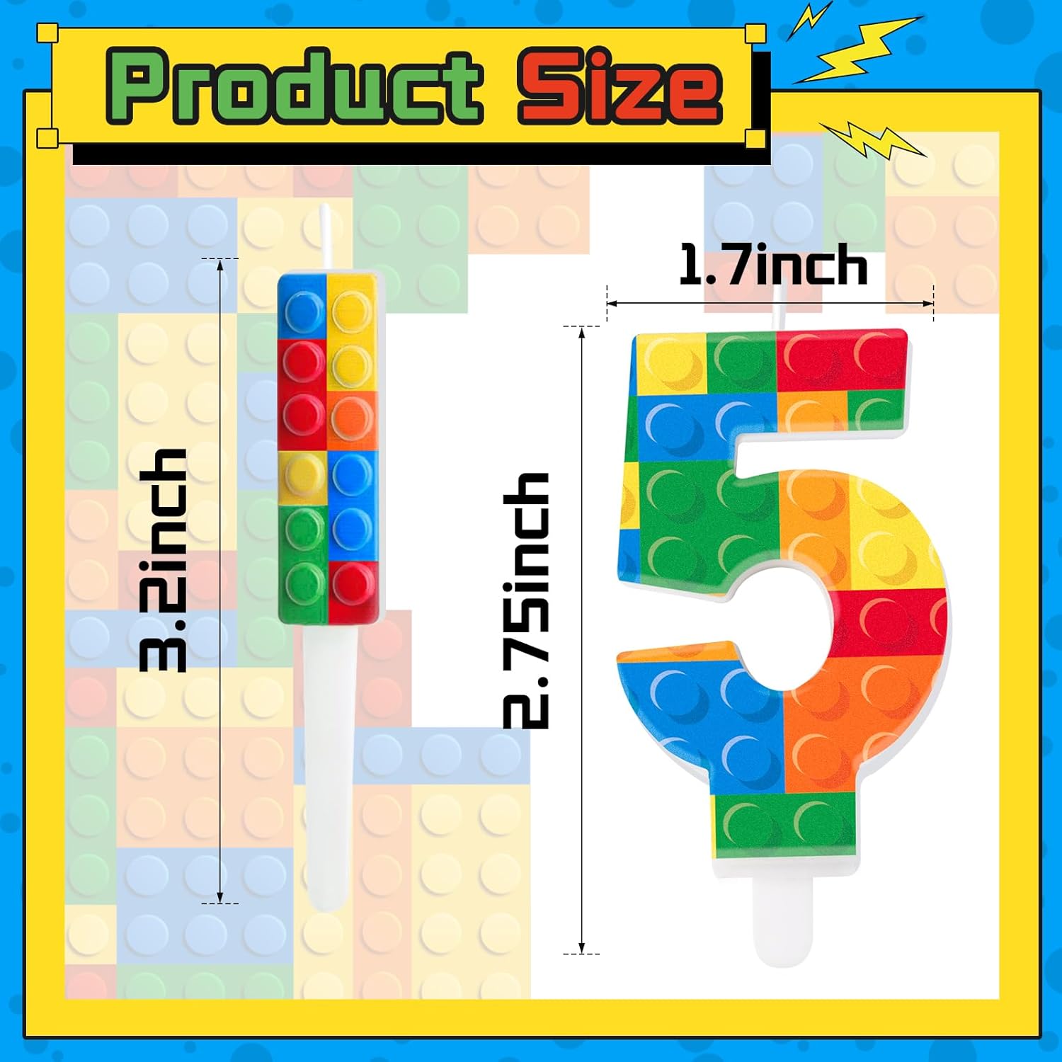 7 Pcs Building Block Themed Birthday Candles Set Building Blocks Number 5 Candle Cake Topper for Building Block Party Decoration Supplies (Number 5)