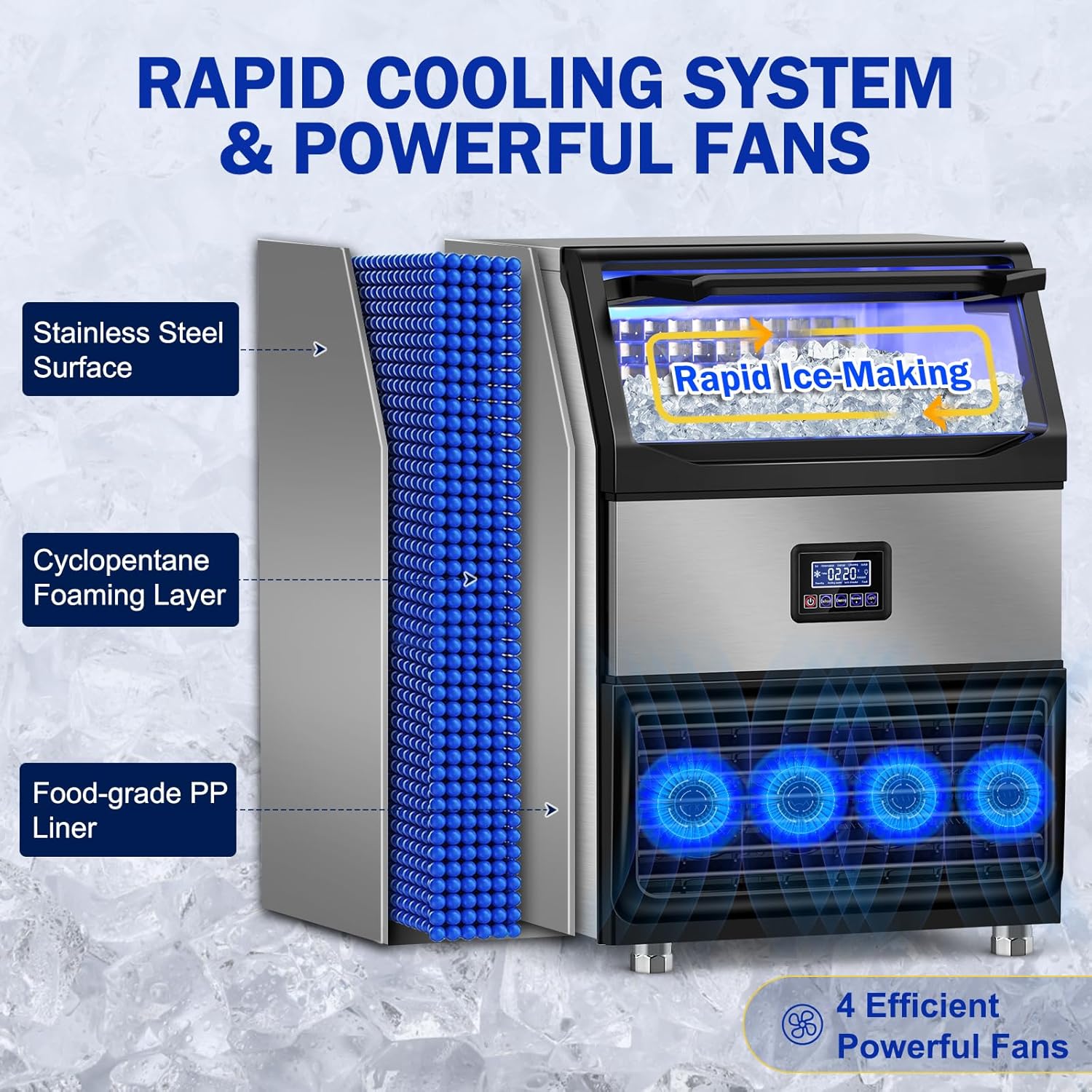 - Commercial ice machine 350 lbs/24H - Never Run Out of Ice, RAPSUAR's Commercial Ice Maker Machine produces 350 lbs of ice per day with a 75 lbs storage bin, Perfect for home and commercial use. Say goodbye to ice cube shortages and enjoy a continuous supply of ice for your drinks and parties.