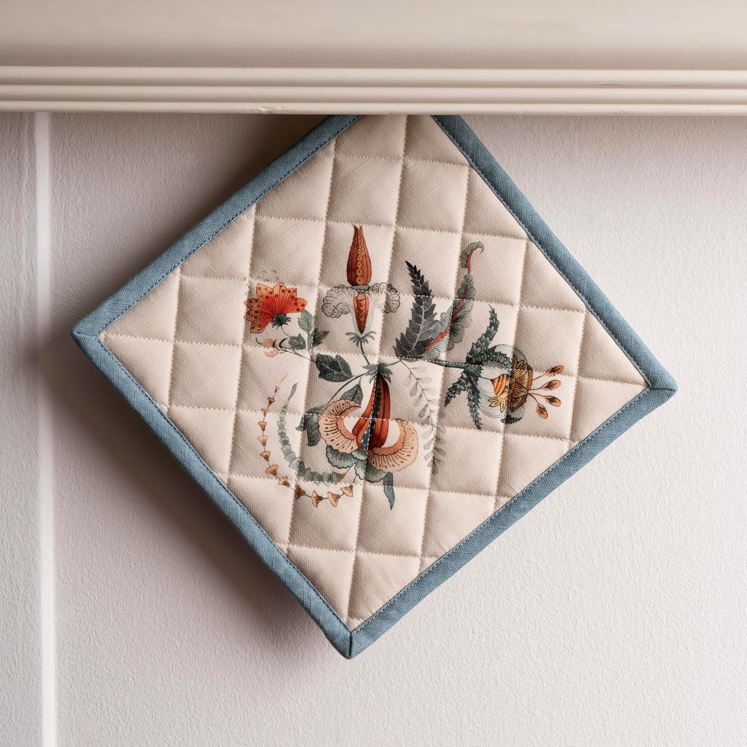 - Package includes: 1 pot holder measures 8"x8". Ideal as a hot pad for dishes, coffee pots, cast iron pans, or cookware. Designed in Europe and Made in India, it blends style, function, and comfort into a daily kitchen essential