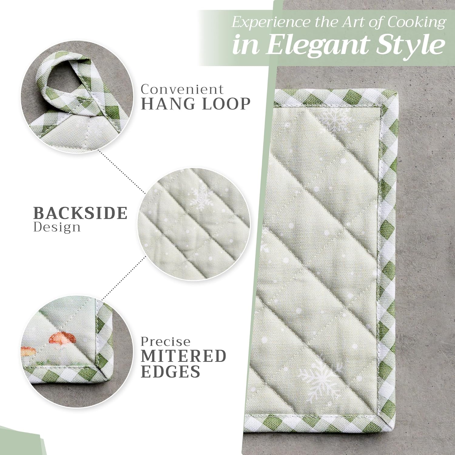 - 100% Quilted cotton: Made from premium quilted cotton, our pot holder ensures safe handling of hot pans or dishes. The soft, durable build provides excellent heat resistance and grip—perfect for everyday cooking and baking needs