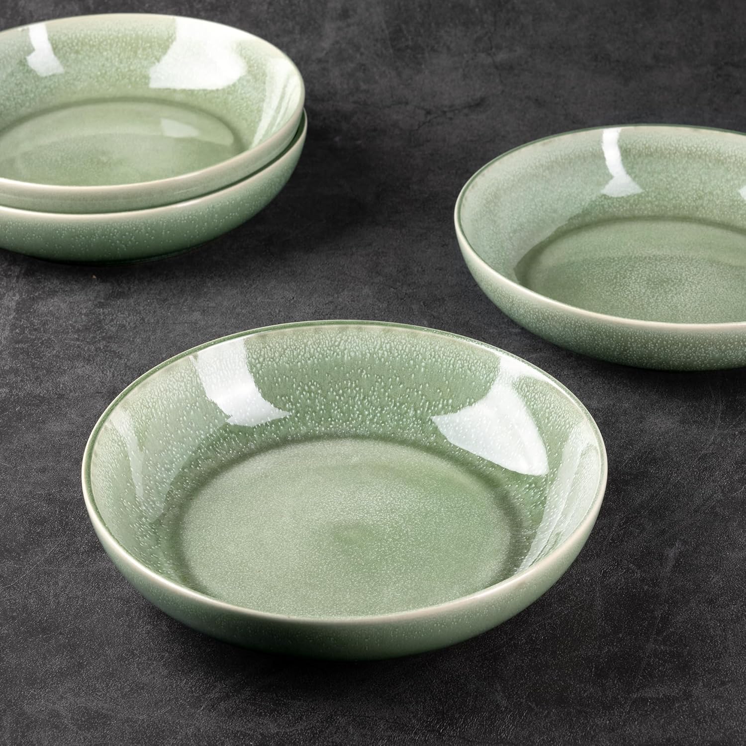 AmorArc 8.5'' Large Ceramic Pasta Bowls Set, 36oz Stoneware Bowls Set of 4 for Kitchen, Reavtive Glaze Bowls-Microwave,Dishwasher Safe for Pasta,Salad,Oatmeal-Olive Green
