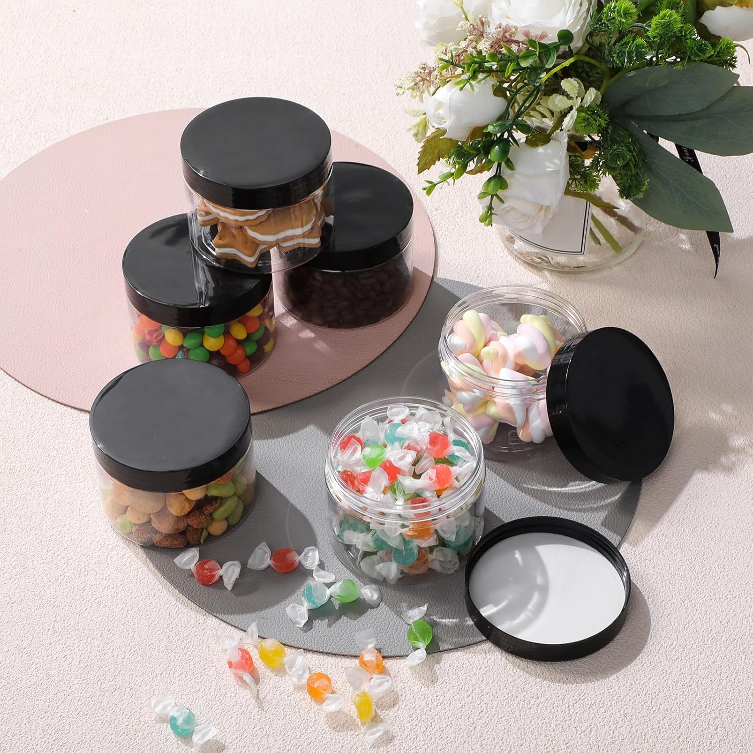 - Quality material: these round plastic pot jars adopt quality PET plastic, not easy to be broken, with good impact resistance, keep everything neat and organized