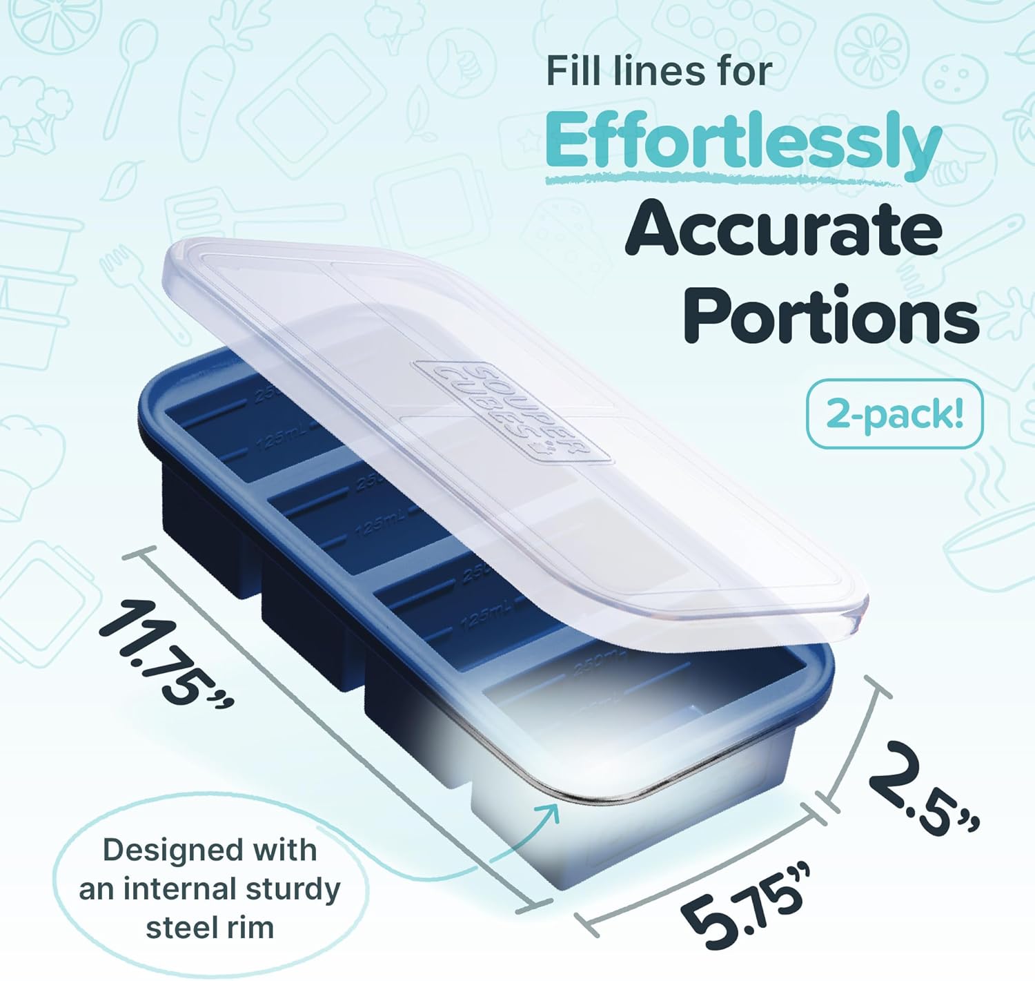 - EASY TO PORTION: The silicone soup freezer container comes with convenient fill lines at 1/2 cup, 1 cup, 125 mL, and 250 mL. Each tray measures 11.75"" L x 5.75"" W x 2.5"" H.